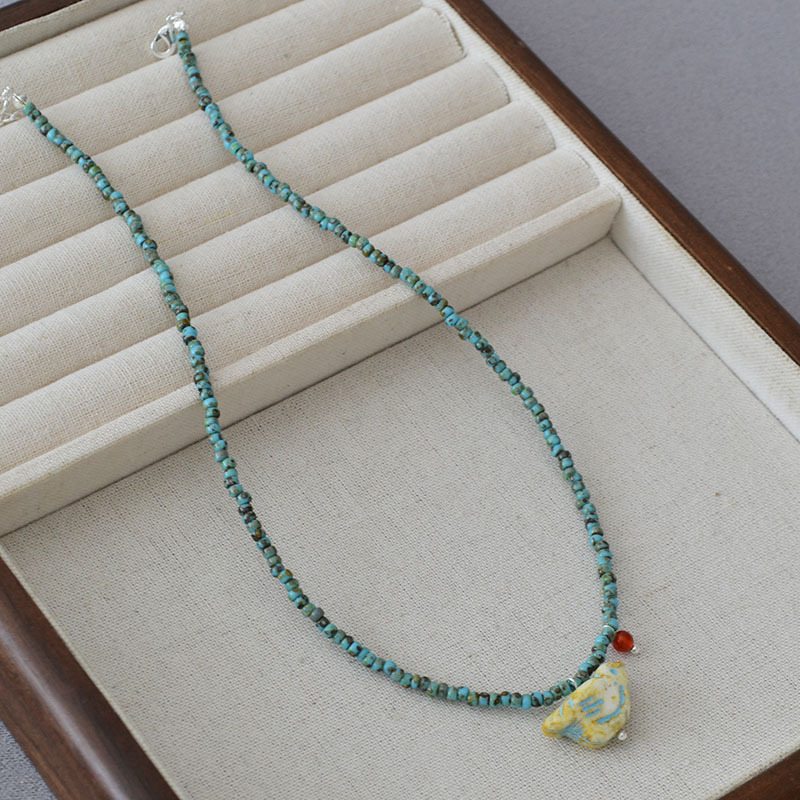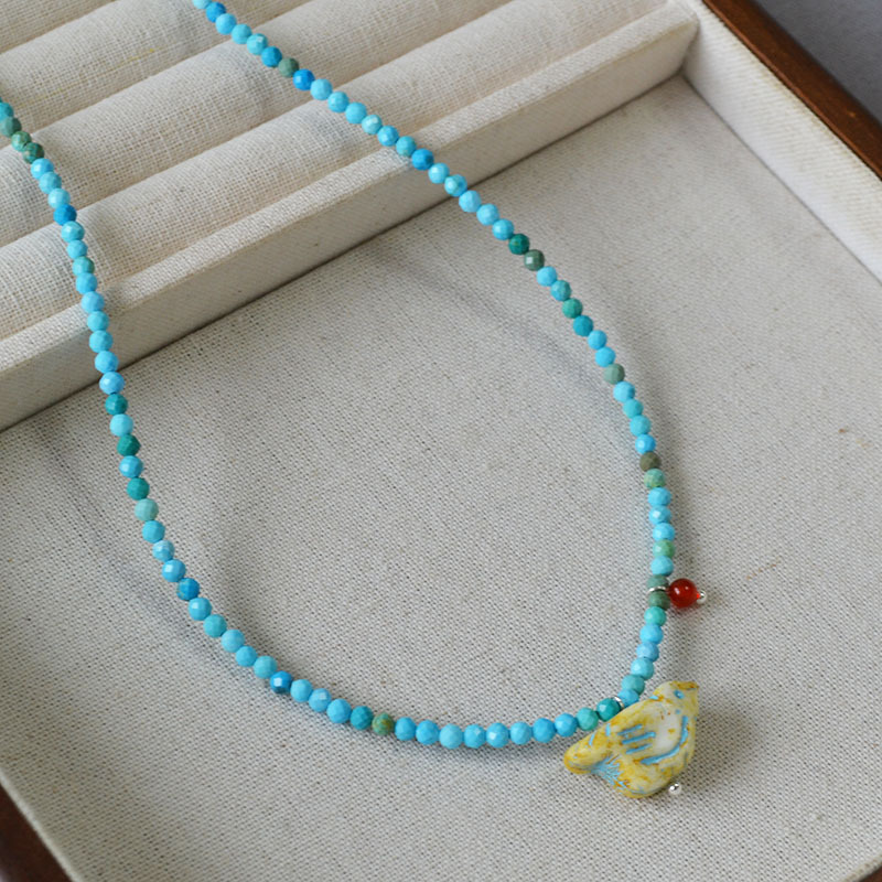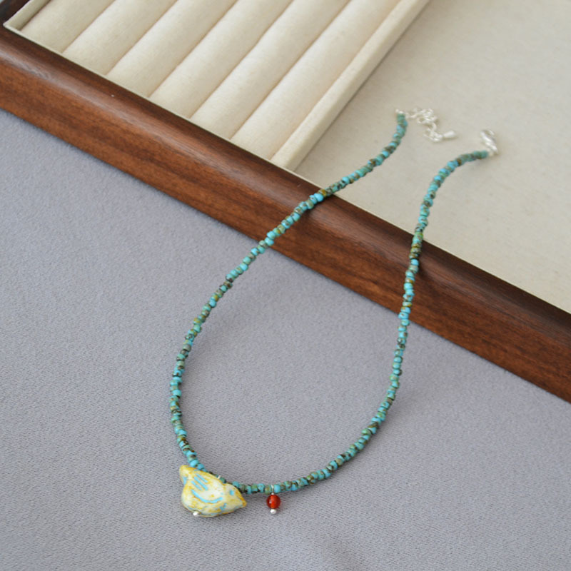 法式小众文艺浪漫御幸毕加索米珠串珠复古小鸟相思红豆锁骨项链女