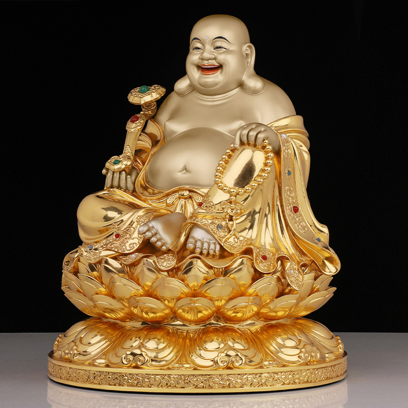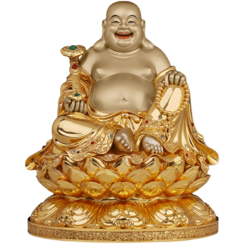 弥勒佛纯铜台湾工艺贴金镶宝笑佛弥勒佛像供奉全莲花座大肚佛摆件