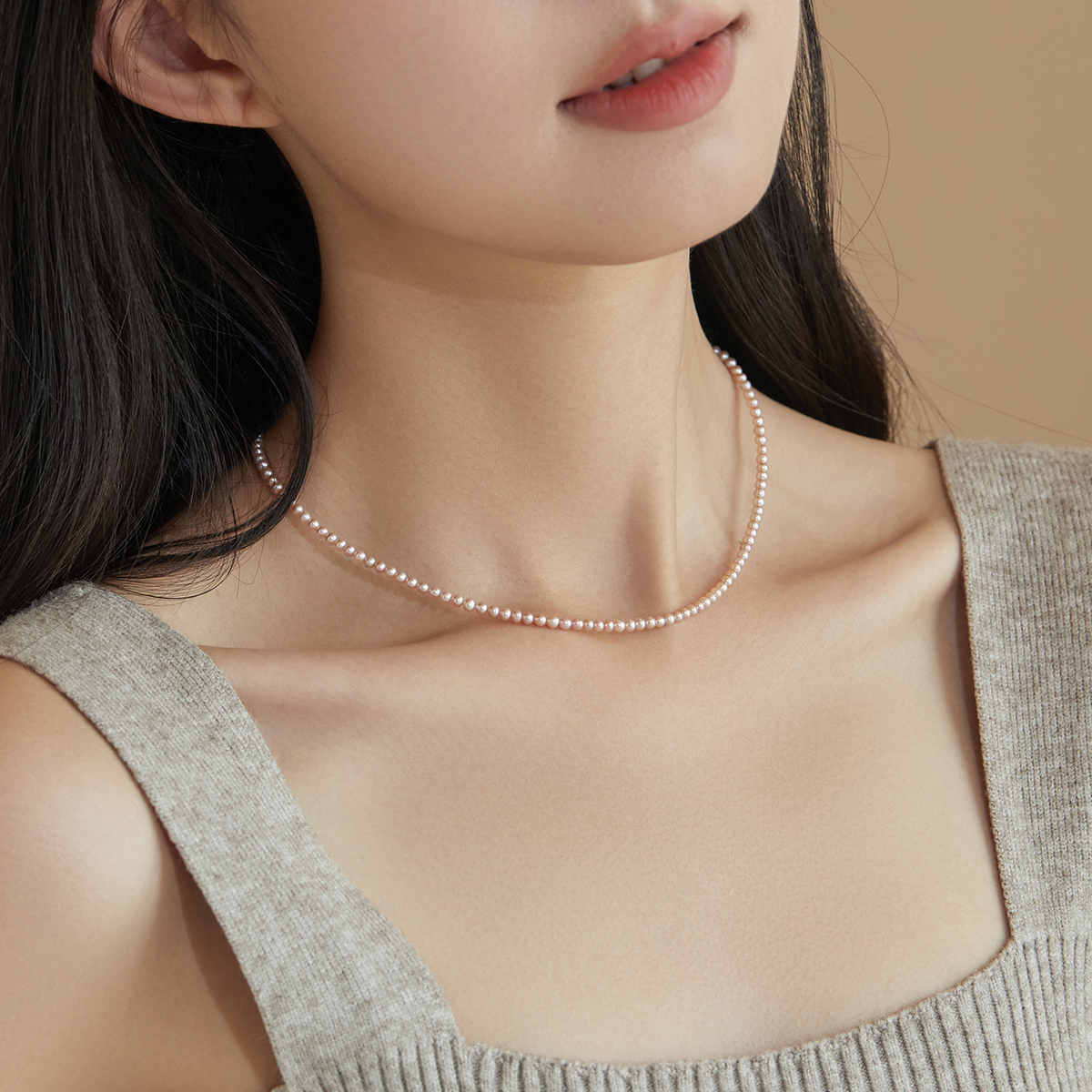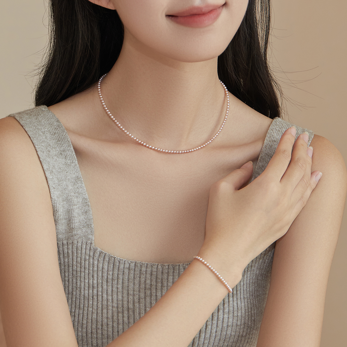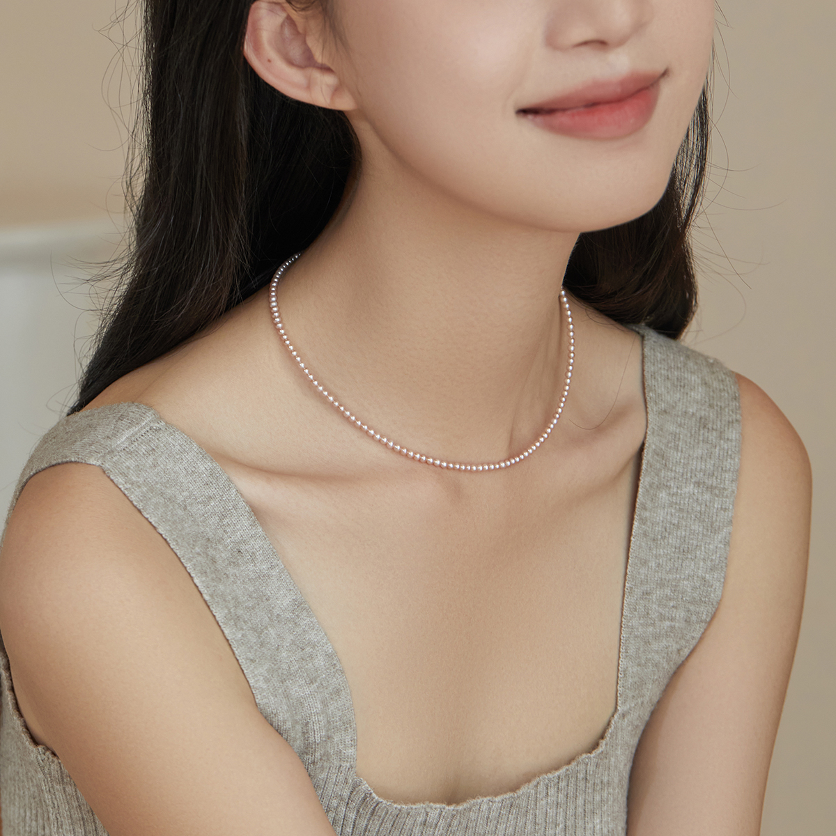 小立交《彩渺》2-3mm近正圆粉紫色天然淡水珍珠14K包金手链女高级