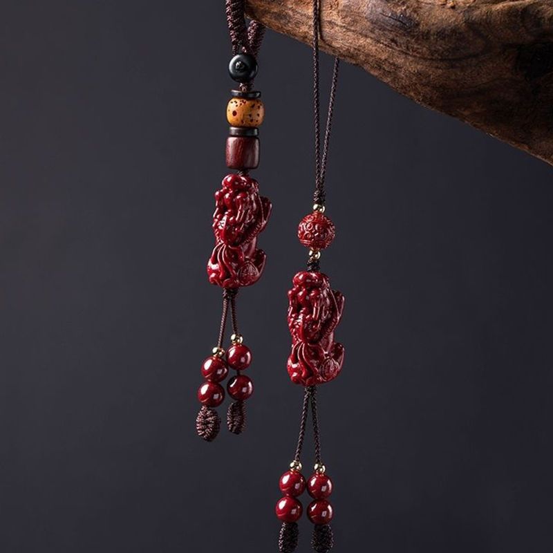 天然朱砂原石吊坠貔貅手机链挂绳挂饰钥匙扣配随身挂件男女吊坠