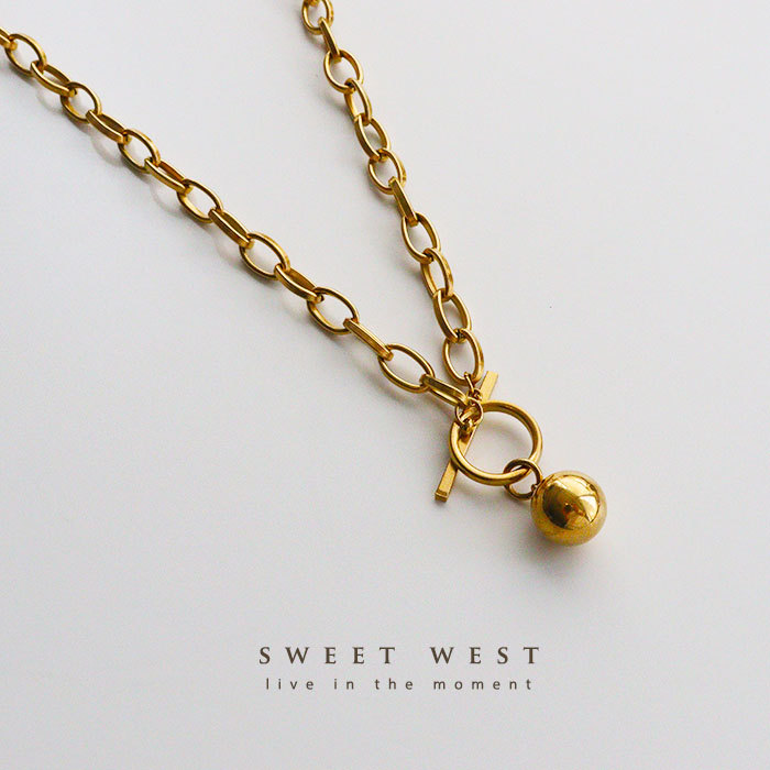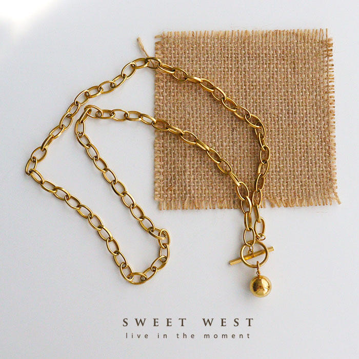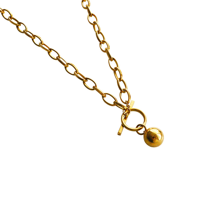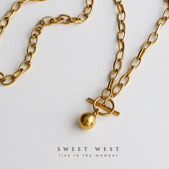 甜西士多/复古金球OT扣oversize夸张长款毛衣链时髦钛钢镀金项链