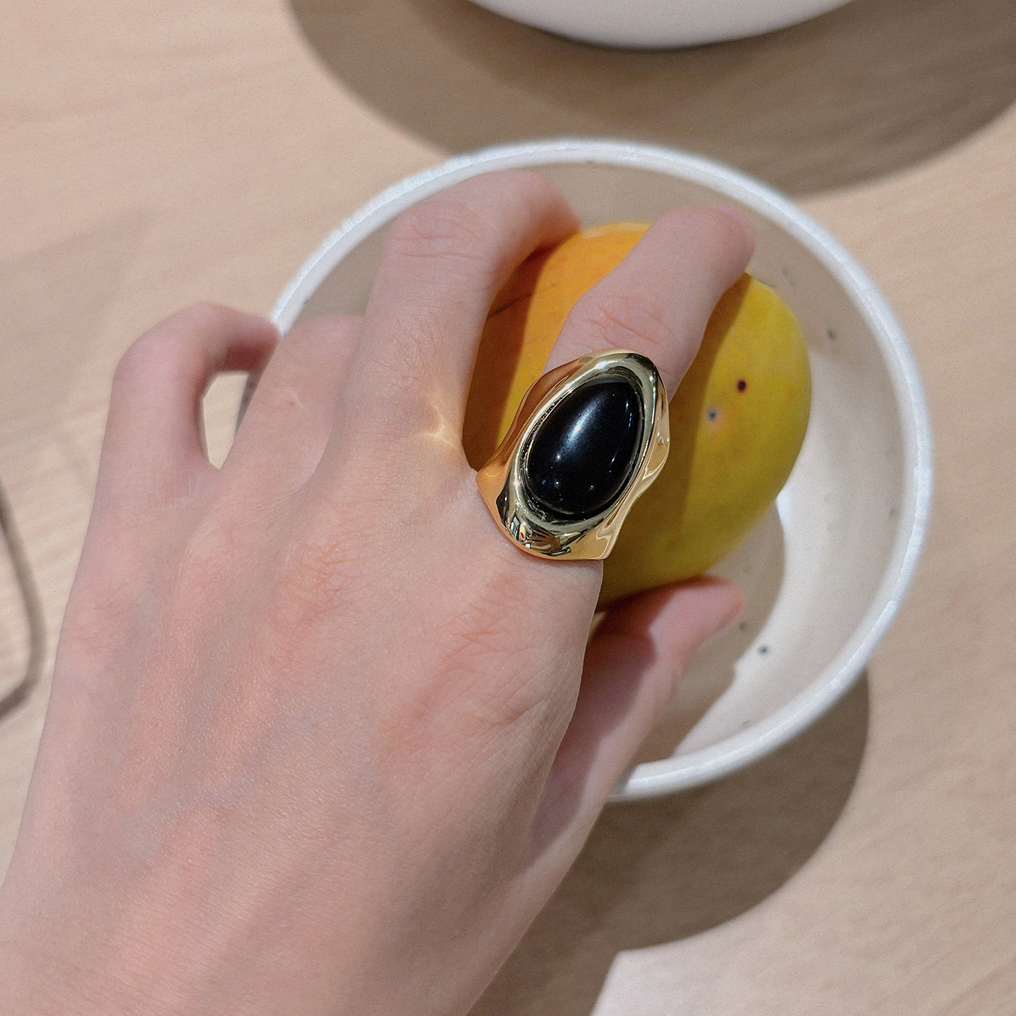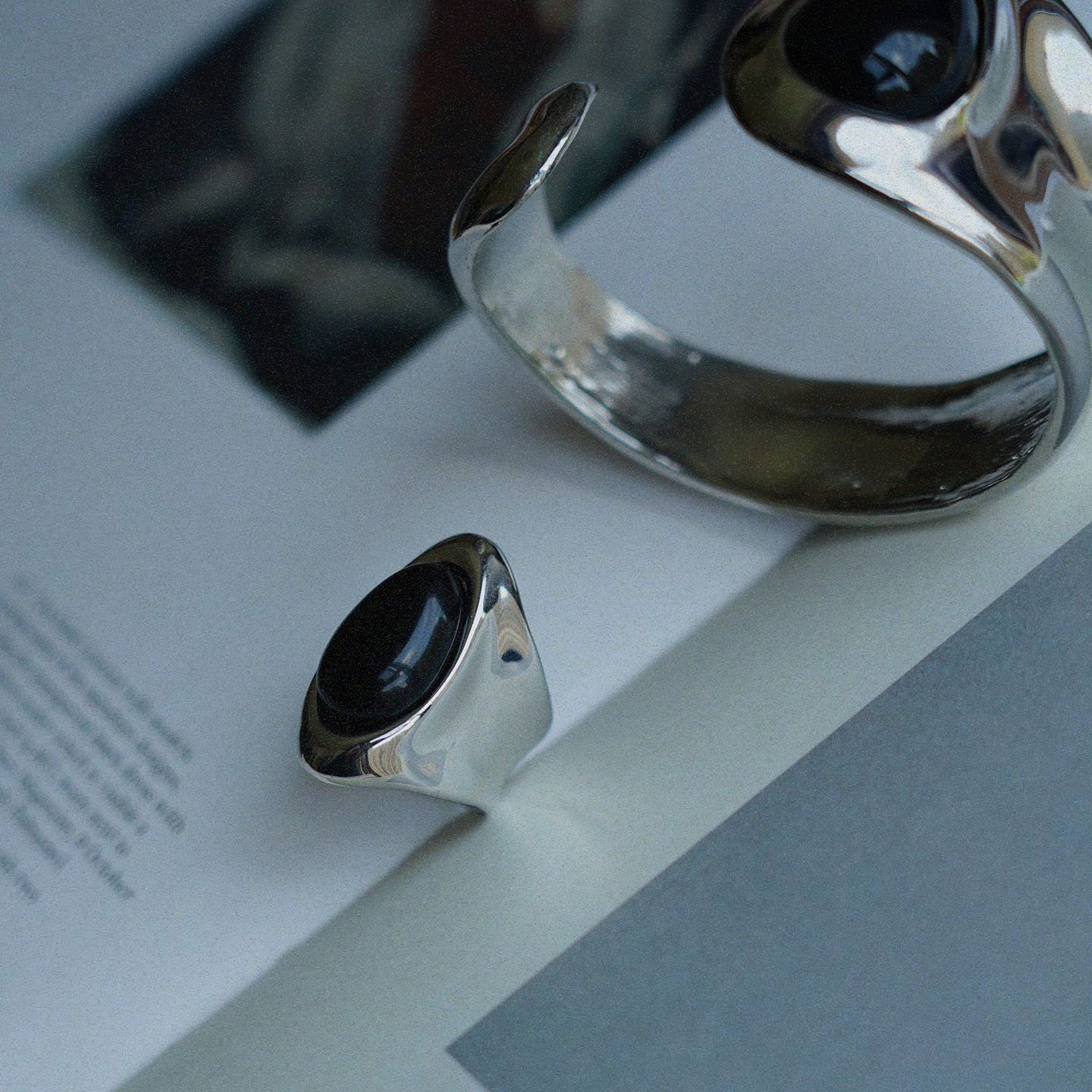 耳边铛99欧美黑色戒指简约时尚夸张手镯金属银色高级感轻奢食指戒