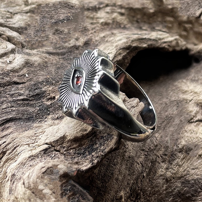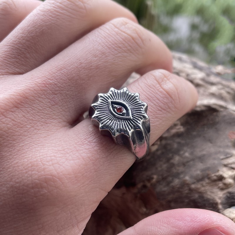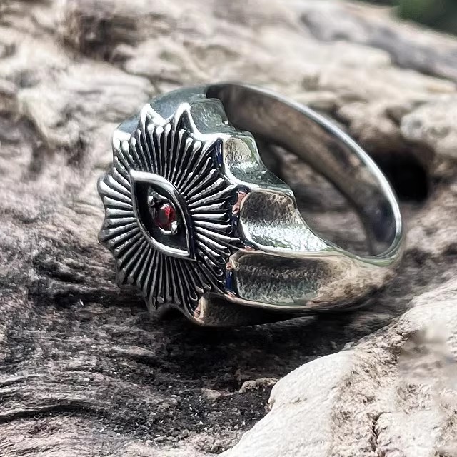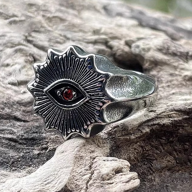 ROCK PUNK共济荷鲁斯红色眼睛钛钢戒指时尚高级感潮牌食指中指环