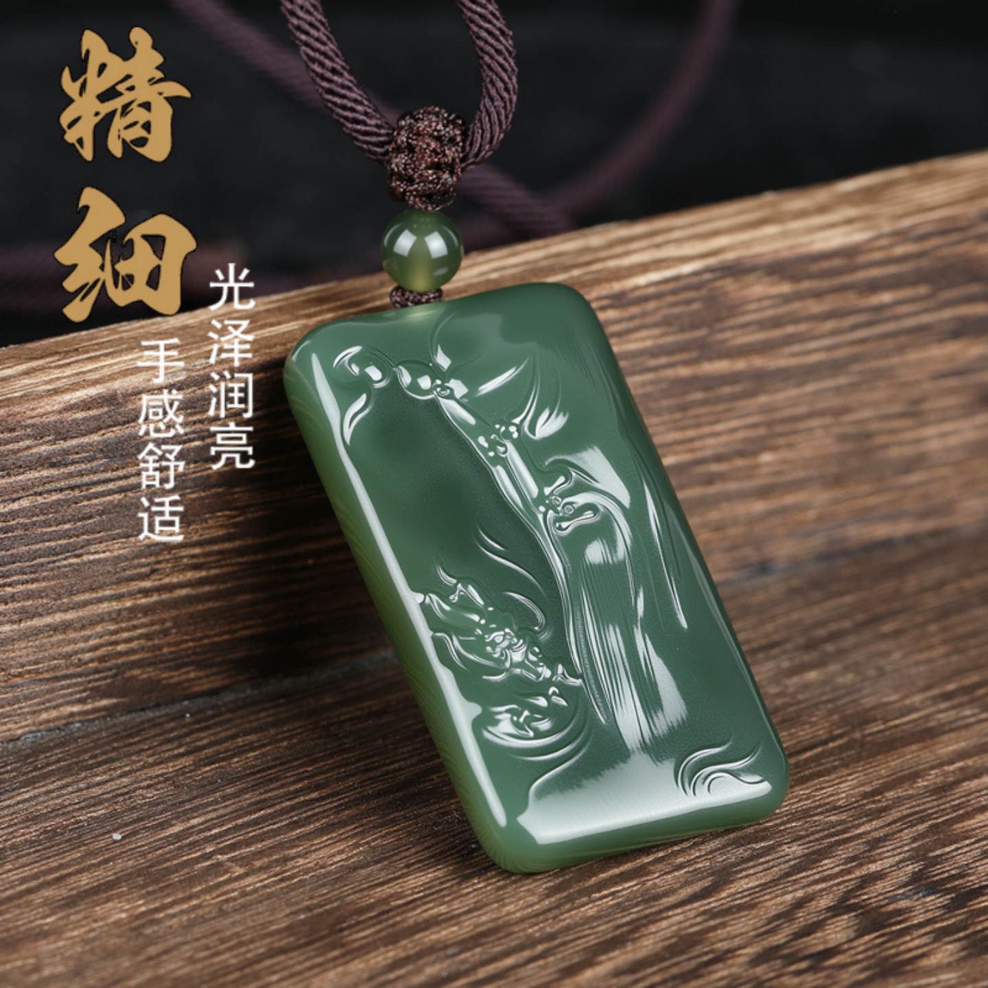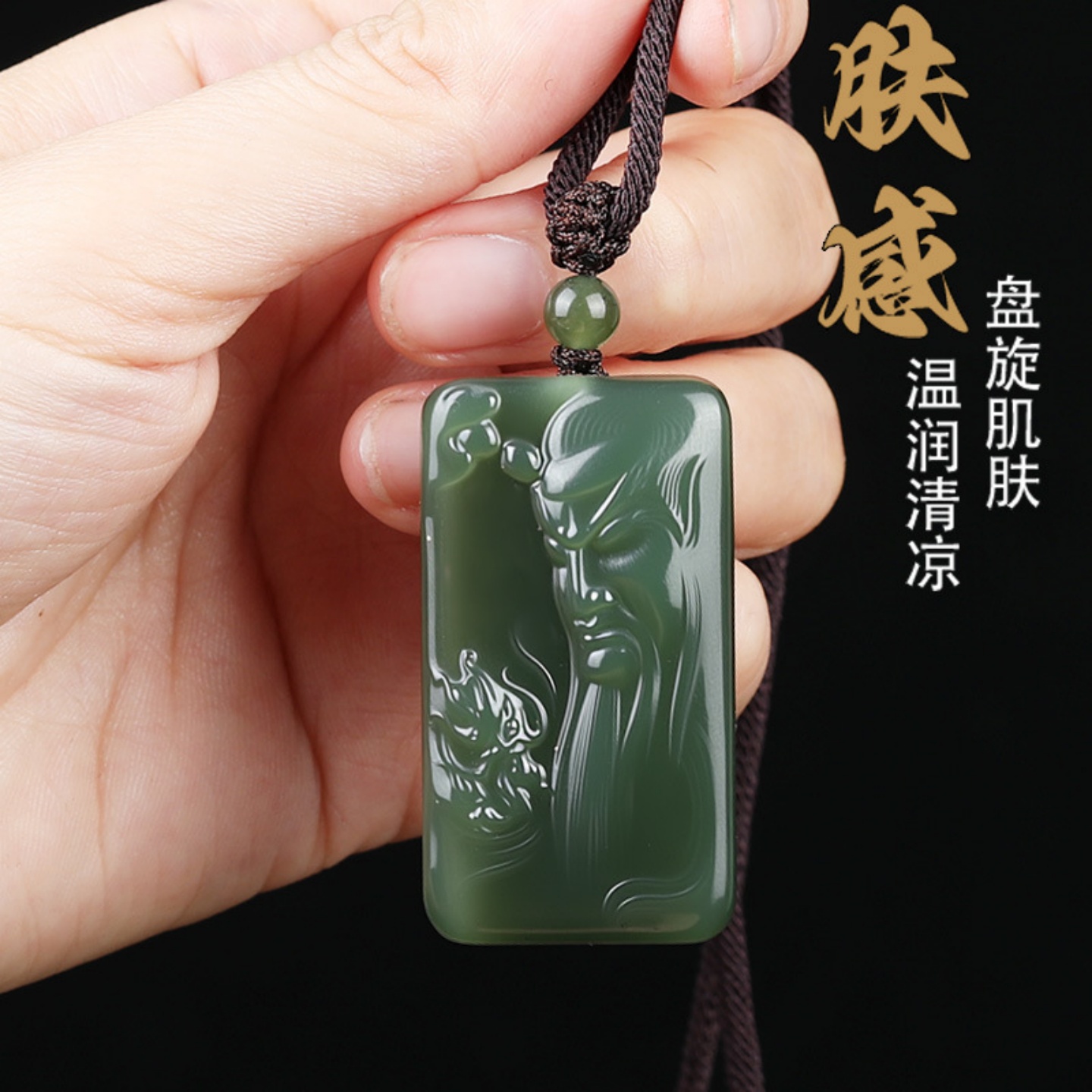新疆和田玉龙头关公吊坠男女款玉石玉器吊坠男士关公玉牌玉佩挂件