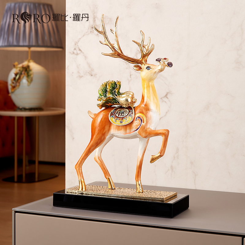 罗比罗丹一路发财摆件创意客厅鹿摆件珐琅彩工艺软装饰品