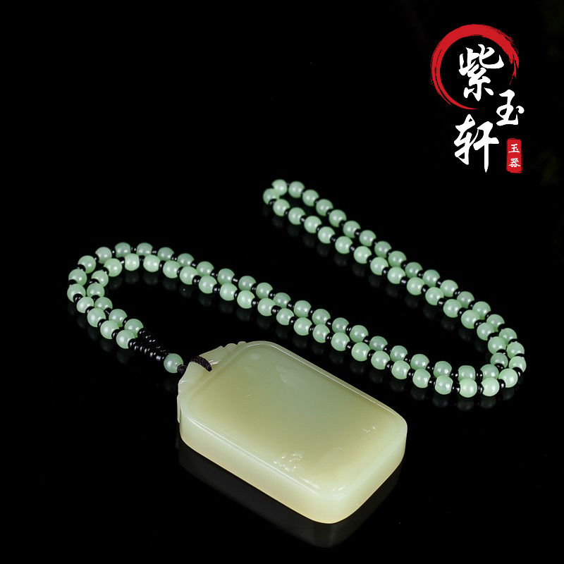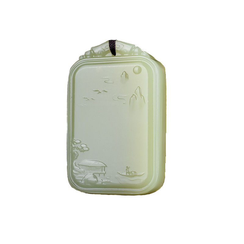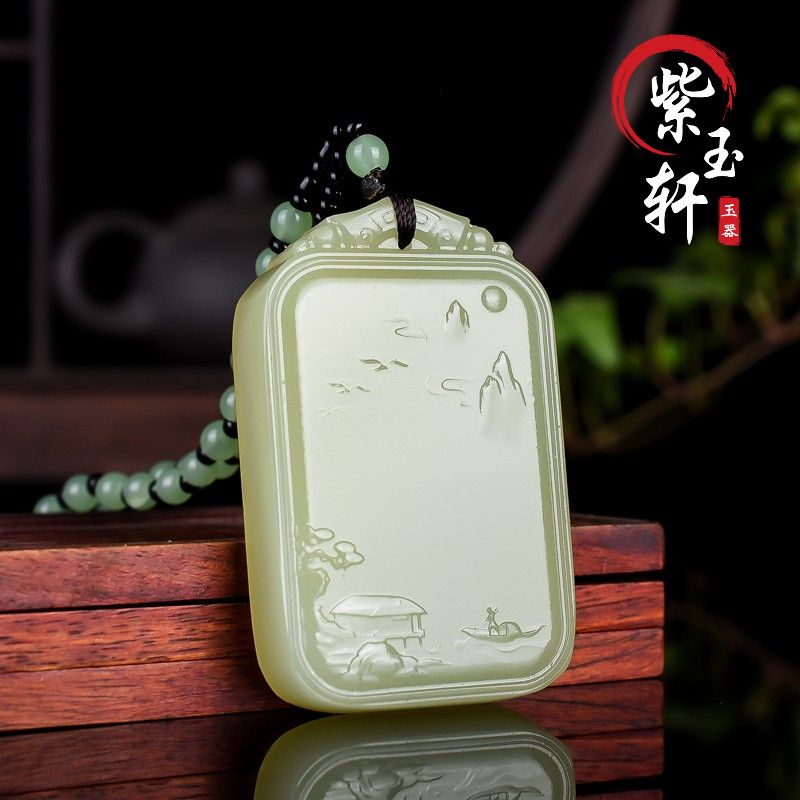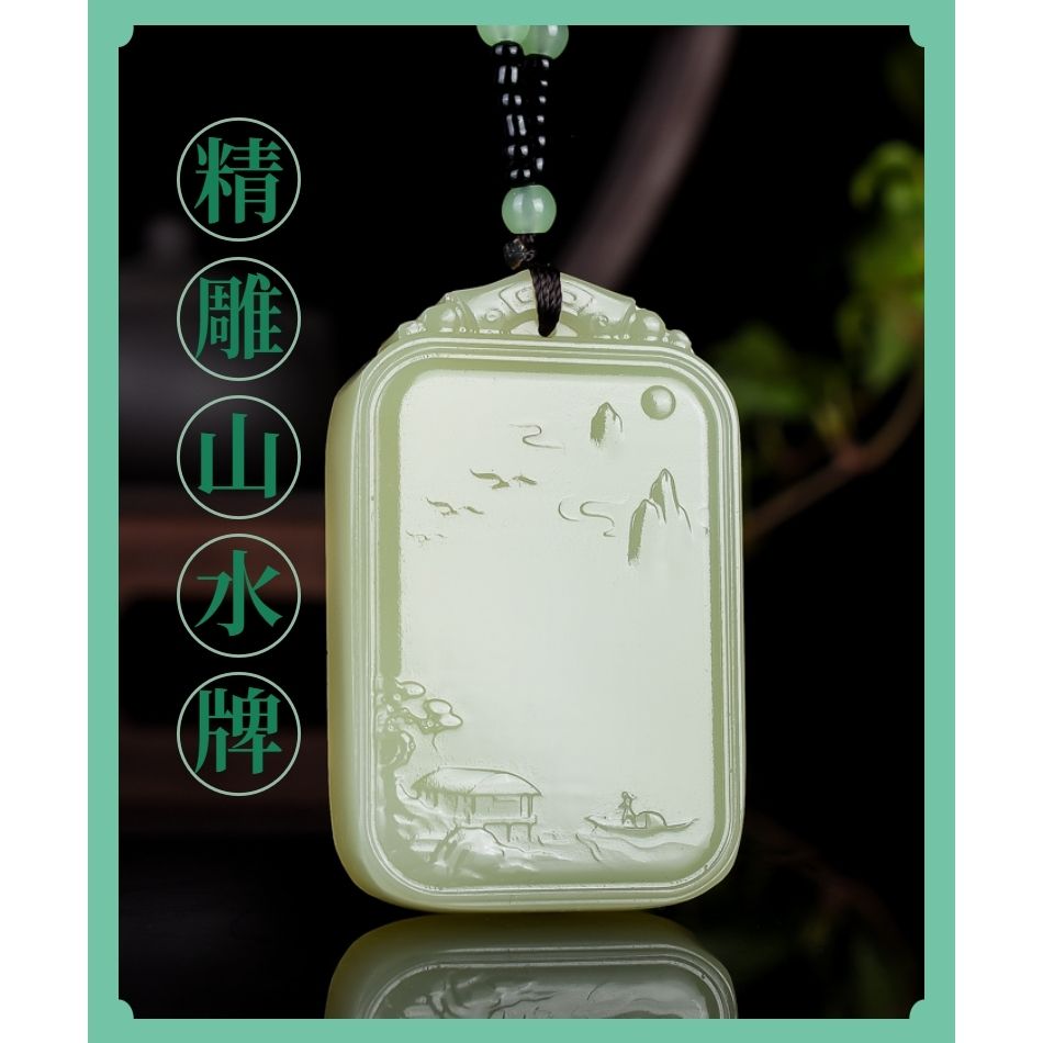 山水牌吊坠男款正品和田色真玉吊坠男士雕刻平安牌女项链饰品