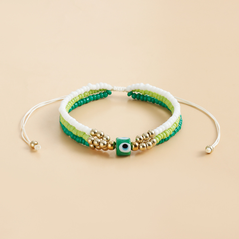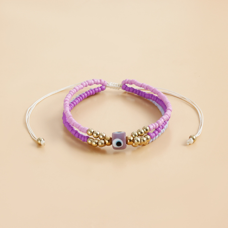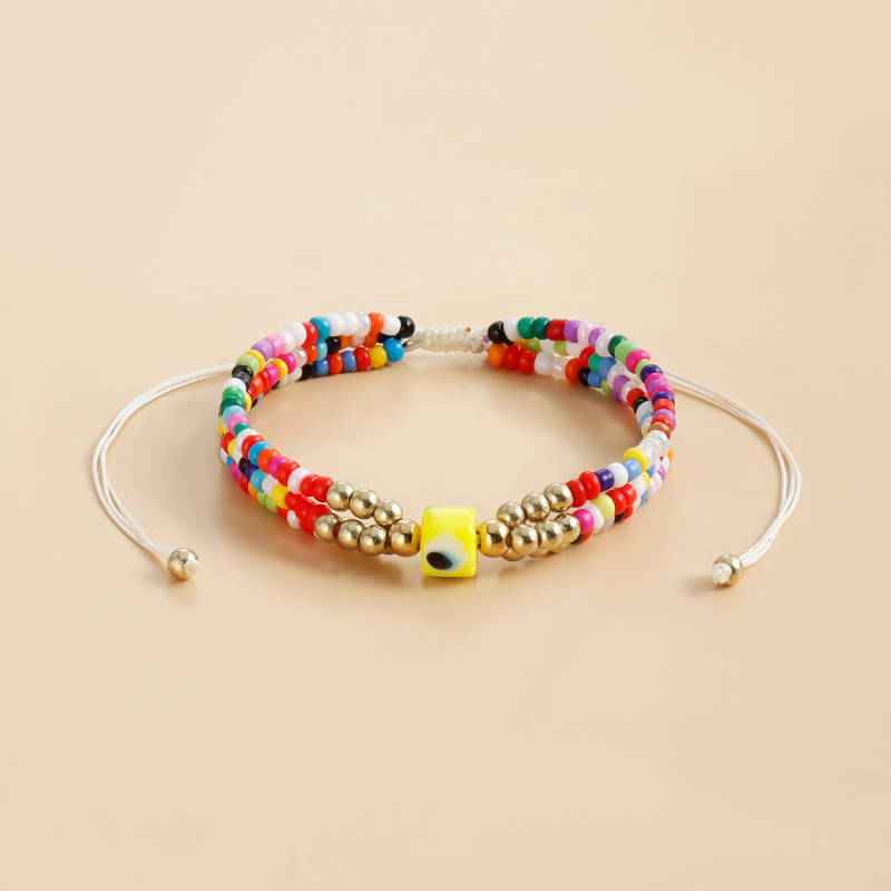 欧美饰品 彩色米珠串珠编织手链 气质个性眼睛恶魔之眼手绳女首饰