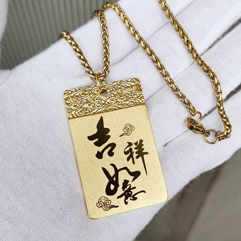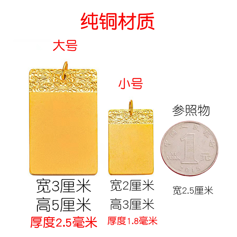 纯铜材质平安无事牌吊坠项链挂件磨砂面光面祥云图案方形定制刻字