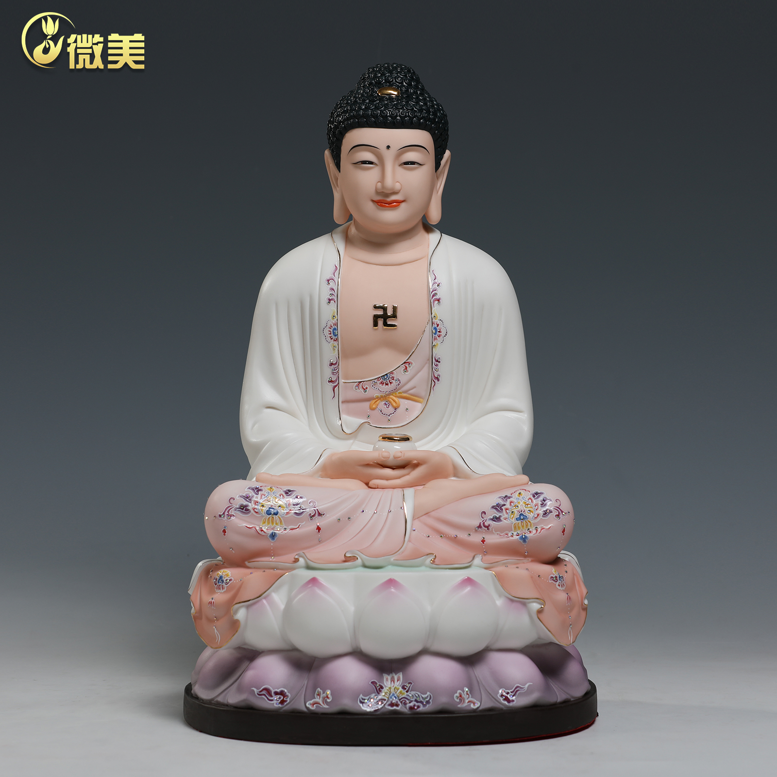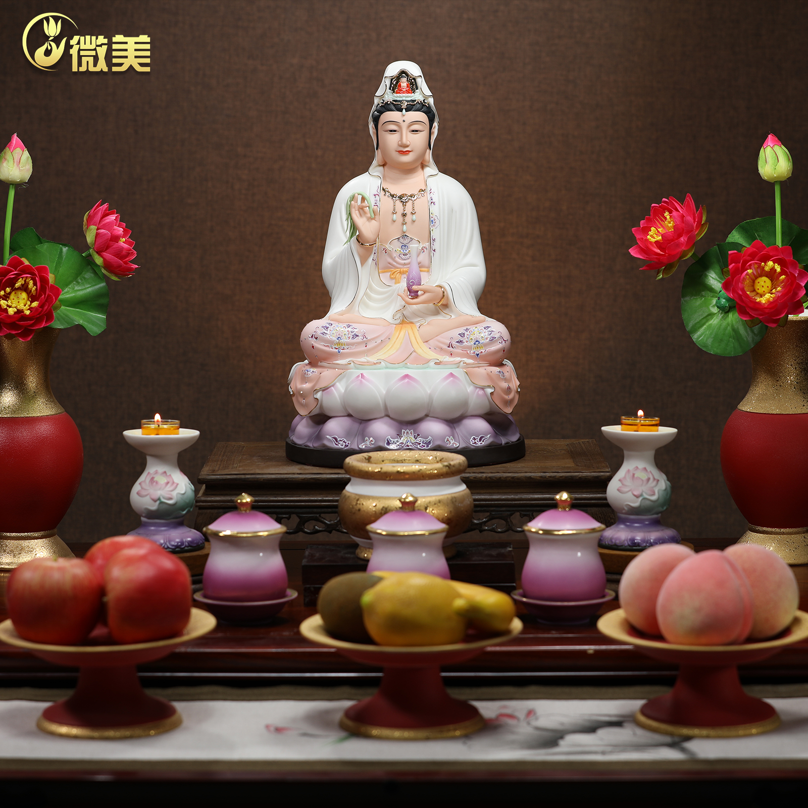 微美陶瓷12至19寸精工彩绘全堂佛四圣像观音如来家用供奉佛像摆件