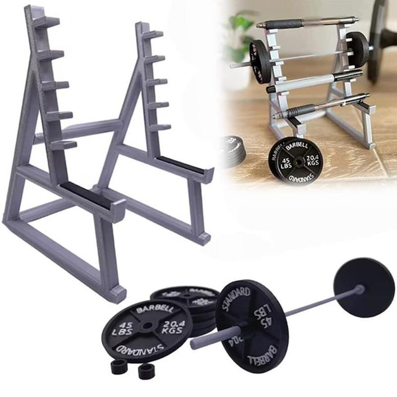 跨境新品杠铃笔架创意钢笔展示架木制书桌摆件装饰小景观装饰礼物