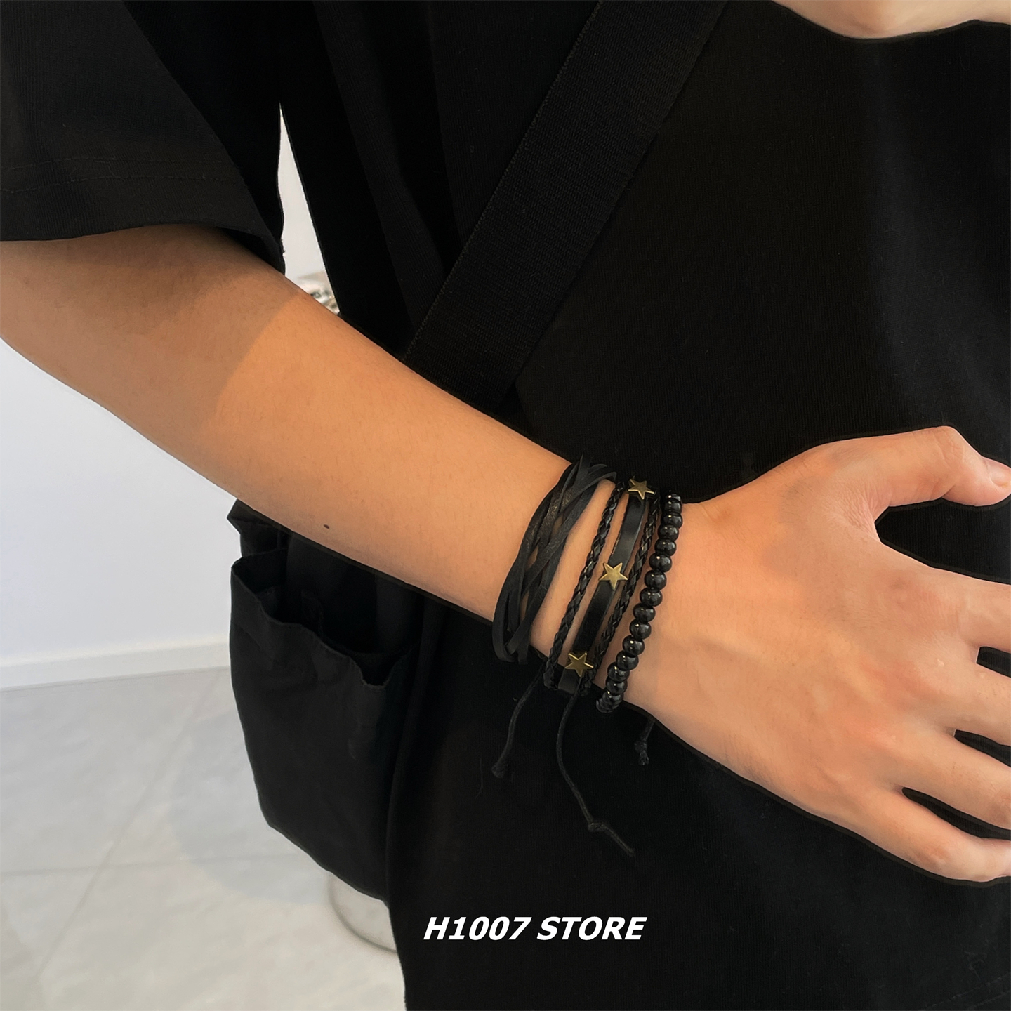 美式星星多层嘻哈风朋克男款手链女星星编织手绳小众设计手串饰品