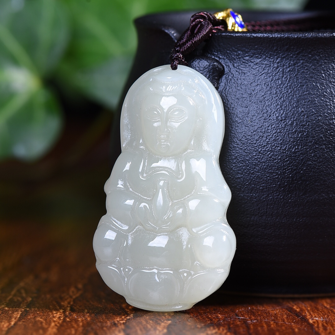 新疆和田玉羊脂玉白玉青白玉吉祥纳福观世音吊坠男女士款挂件玉坠