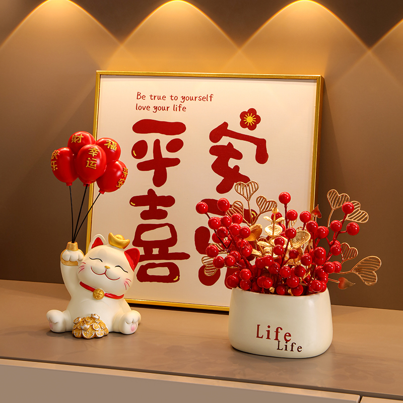 入户玄关招财猫摆件家居平安喜乐乔迁之喜新居布置用品搬家礼物