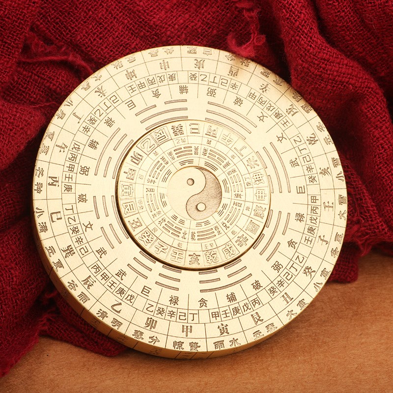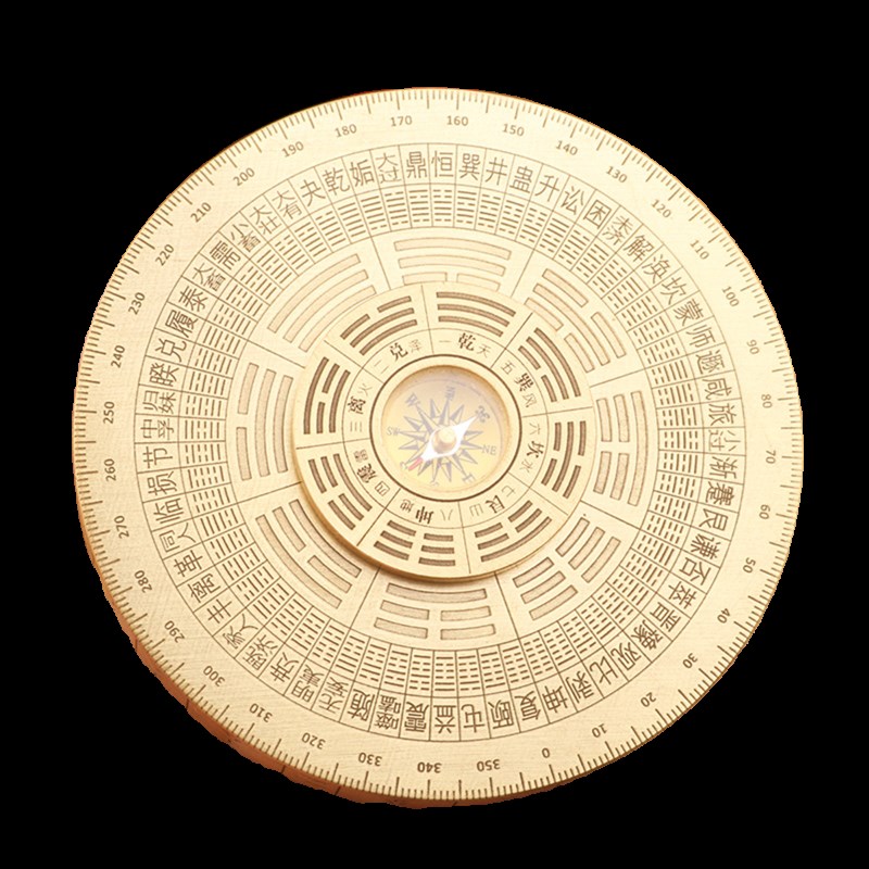 现货速发纯黄铜指南针罗盘太极八卦周易64卦手把件摆件饰品