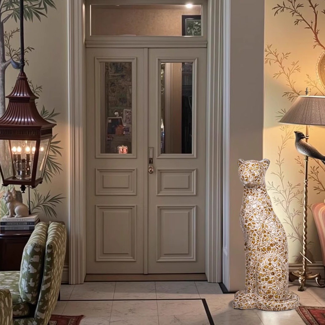 【本尼家】BJ05浅豹纹瓷片豹子手工贴片户外装饰玄关落地摆件
