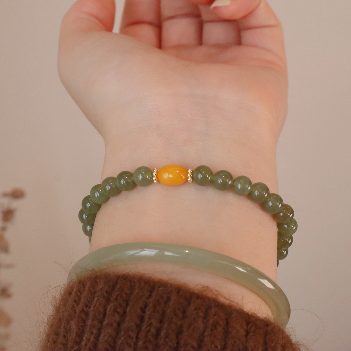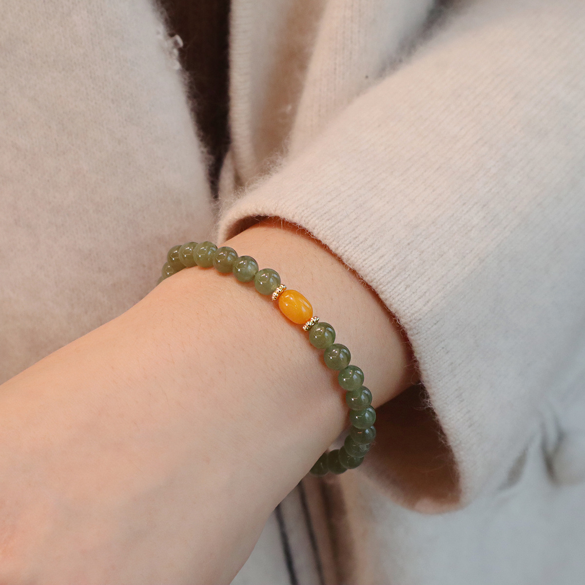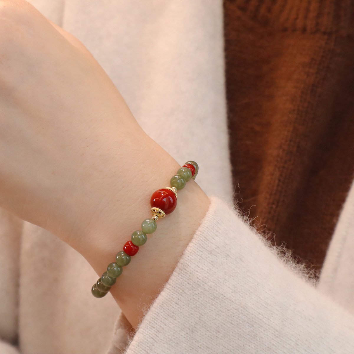 日本品质天然和田玉手串红玛瑙手链国风轻奢蜜蜡串珠手链高级感玉