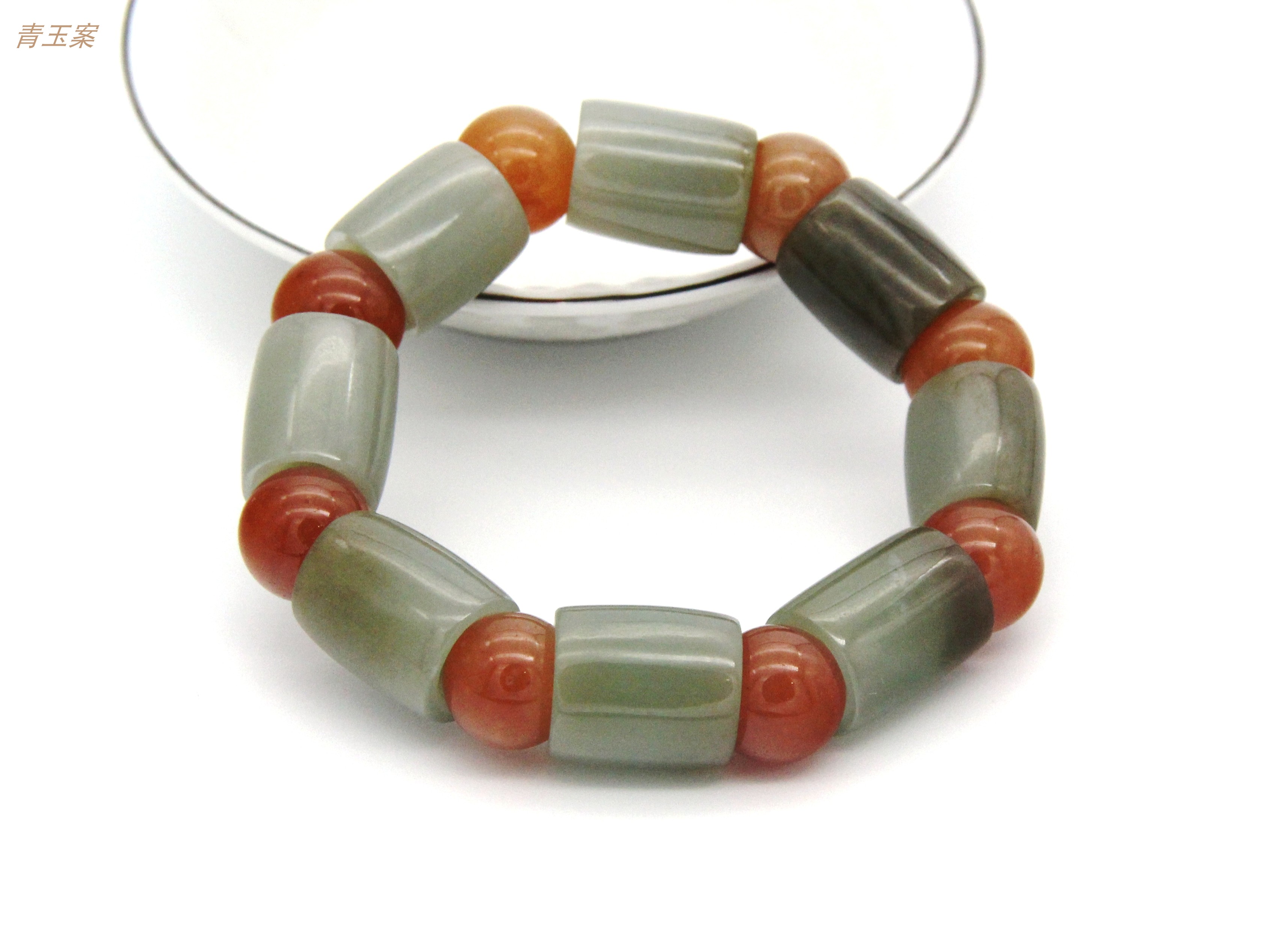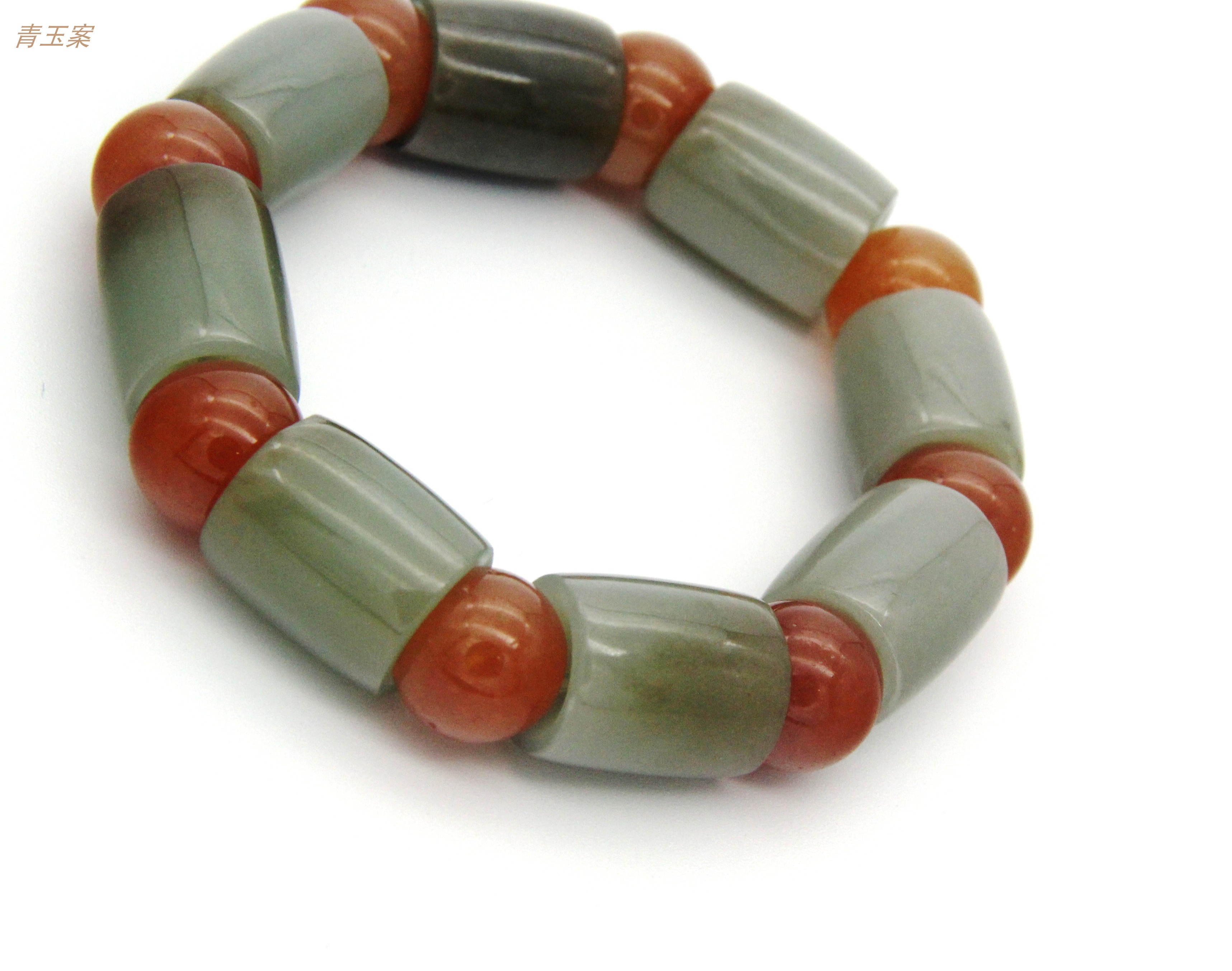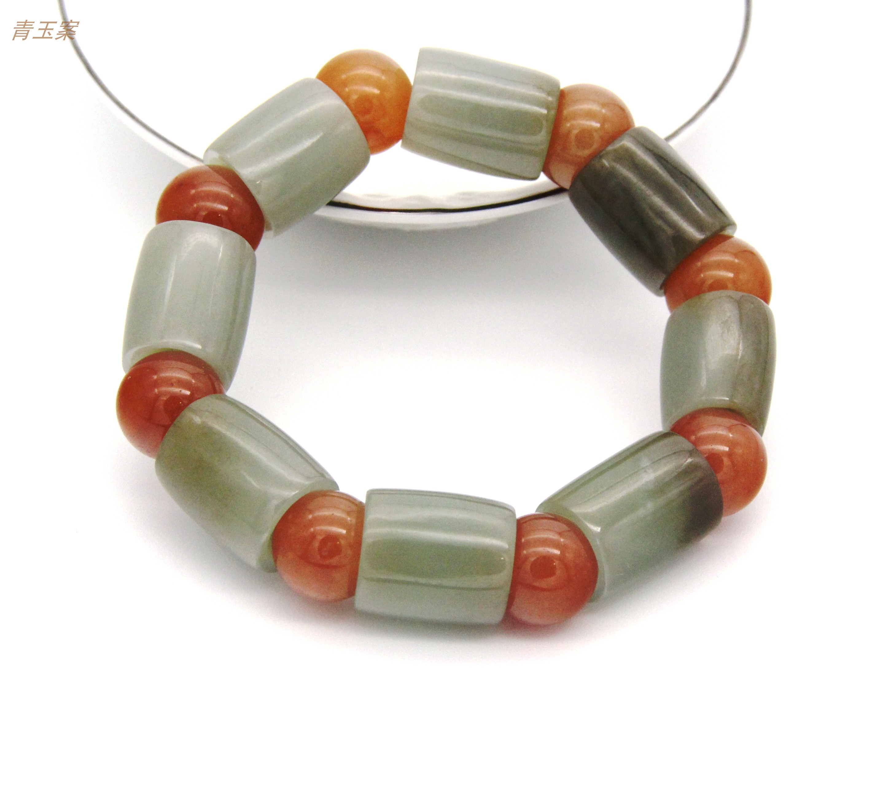 平林岸芳原创纯天然新疆于田青白玉糖色和田玉手串橙红金丝玉手链