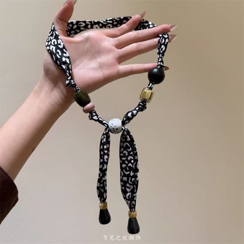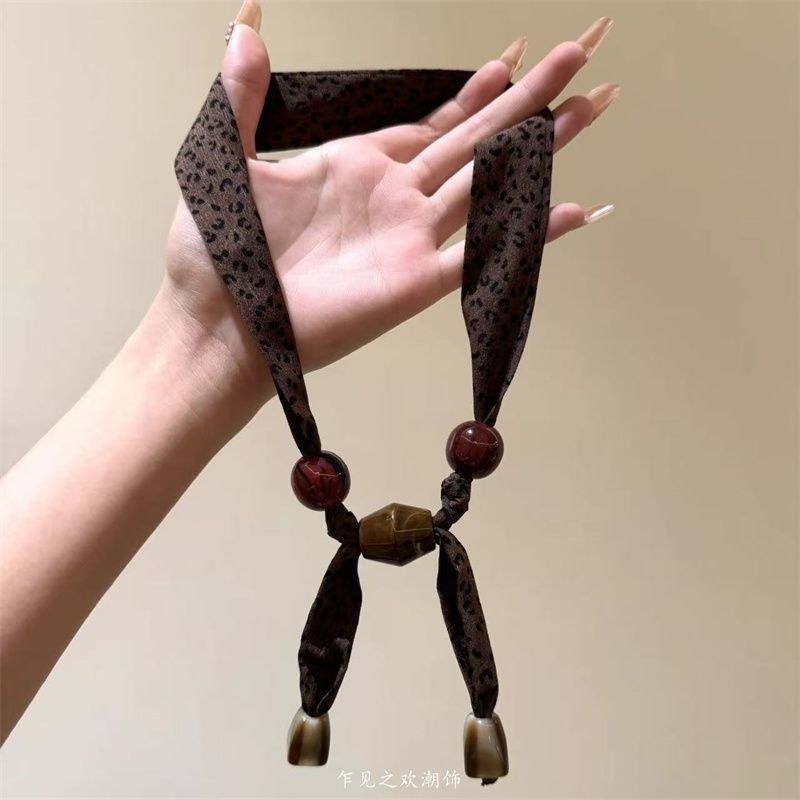 时尚前端~美拉德色豹纹串珠项链女小众独特设计毛衣链挂脖丝巾