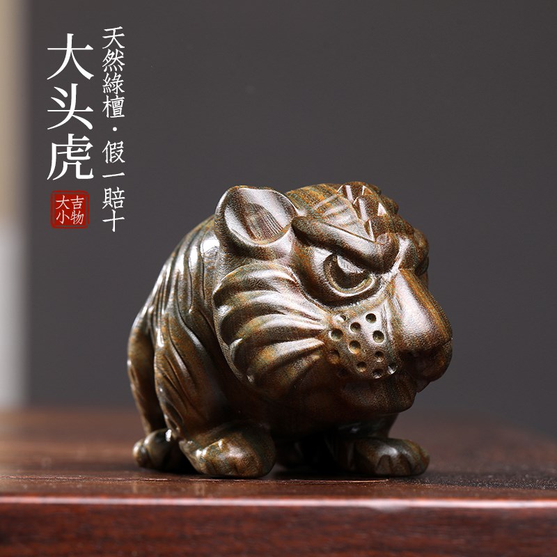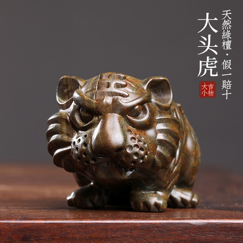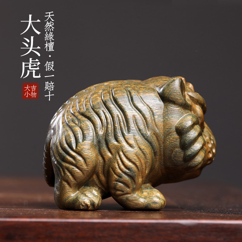 天然绿檀木老虎创意文玩生肖虎手把件家居桌面工艺品实木檀香摆件