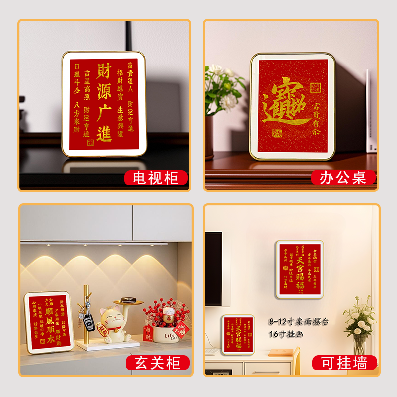 越来越好天官赐福字画摆件桌面装饰书法摆台镇宅红色喜庆客厅挂画