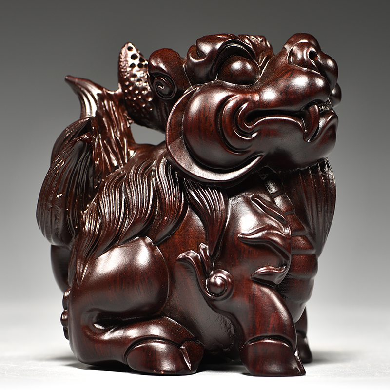 黑檀木雕麒麟摆件木制麒麟一对木头家居客厅玄关公司装饰开业送礼