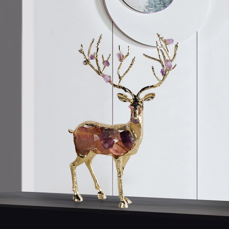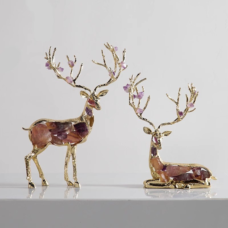 鹿鹿生辉工艺品酒l柜艺术装饰品老板办公室桌面马到成功紫水晶摆