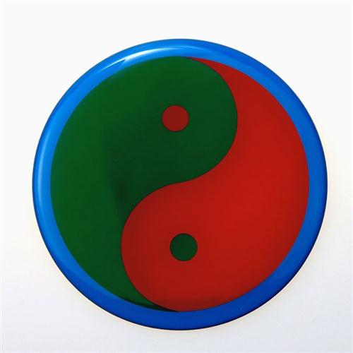 黄万字符能量贴 黄铜8公分红绿蓝黄黑边太极八卦符 万字符万摆件
