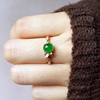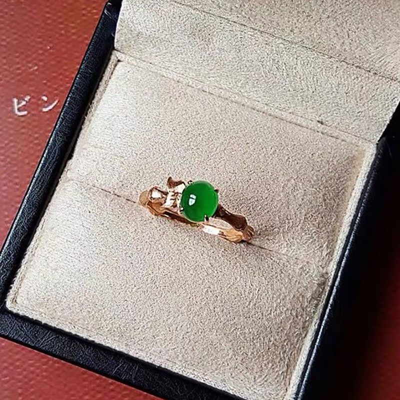日韩阳绿满绿蛋面镶嵌s925纯银玉髓戒指复古小巧竹节钻石指环女款