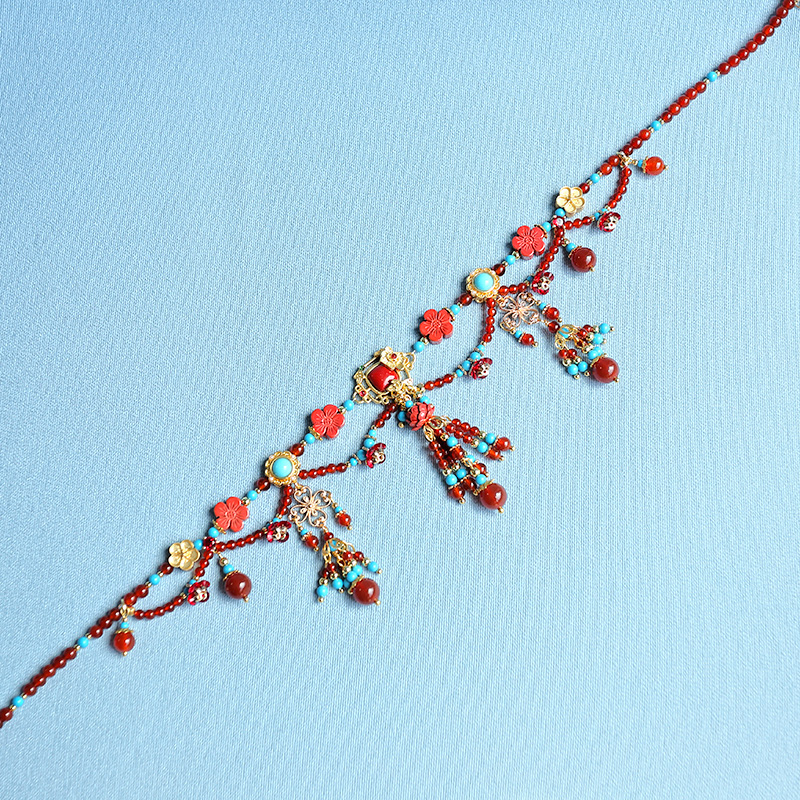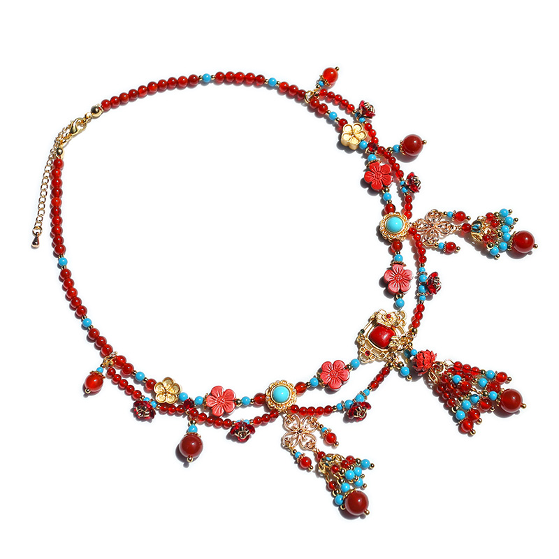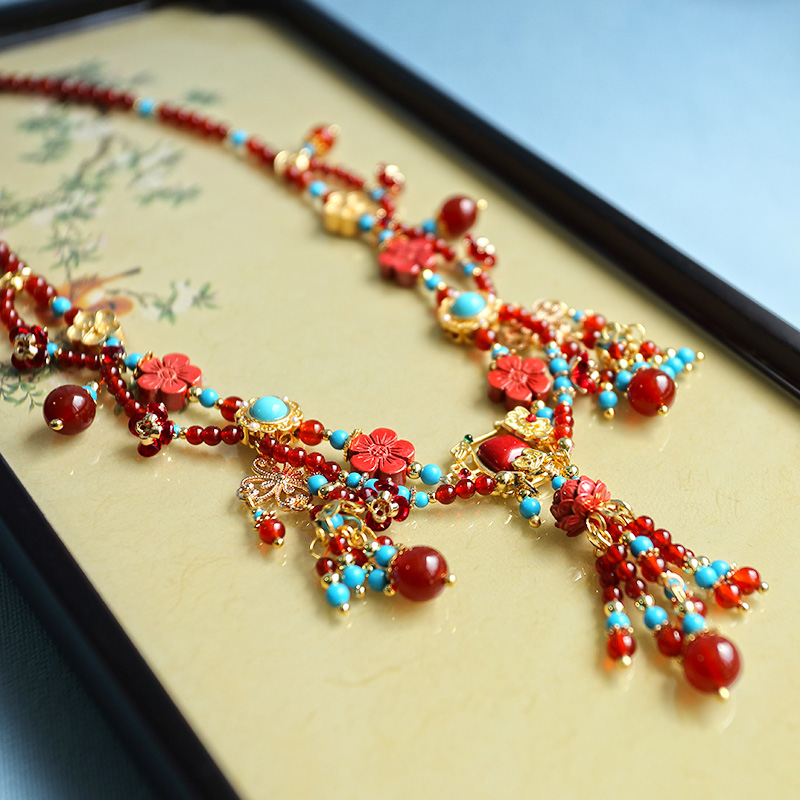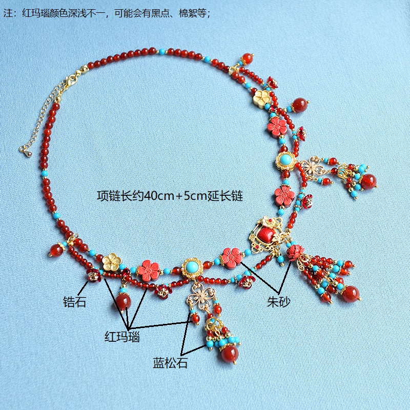 墨涧花饰品 红玛瑙蓝松朱砂项链女古风轻奢小众原创设计