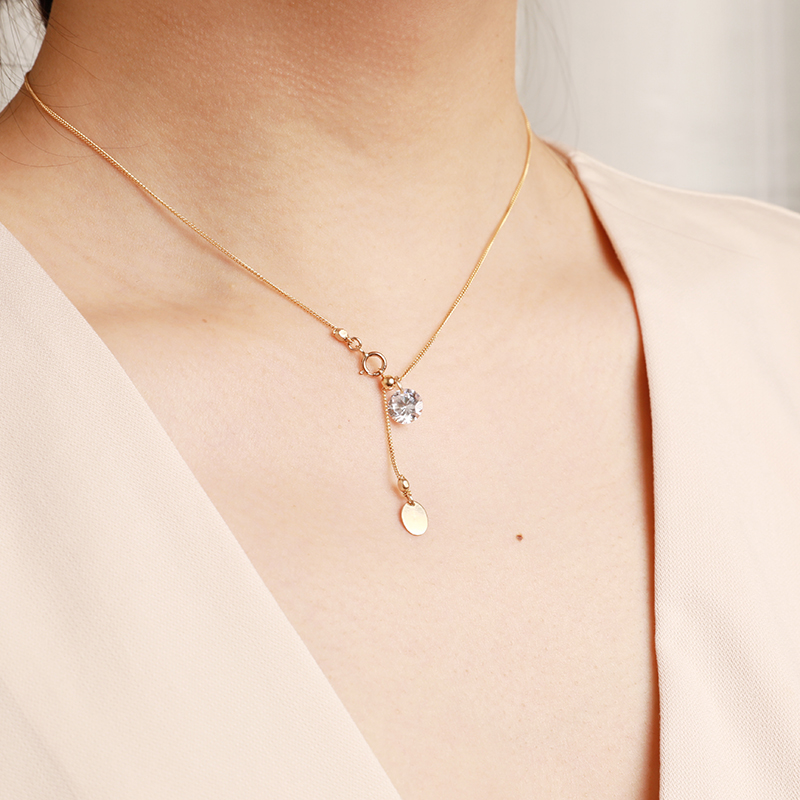 美国产14K注金超闪锆钻简约极细可调节项链不褪色防过敏多种戴法
