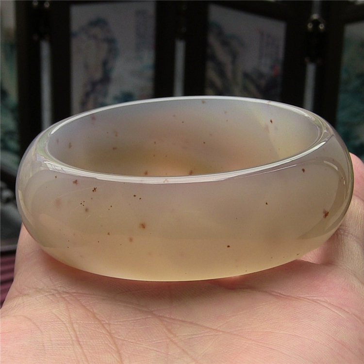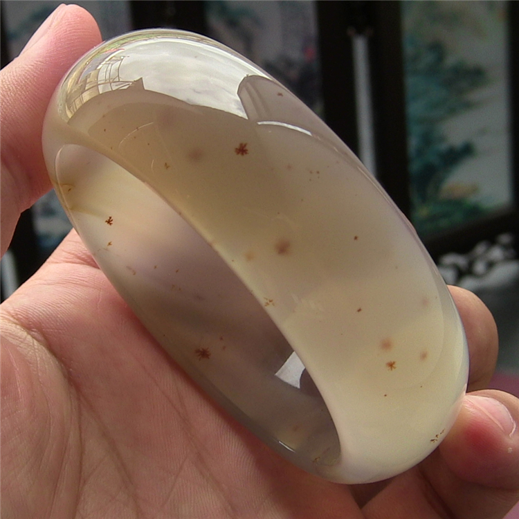 天然巴西玛瑙手镯/加宽加厚/原色无优化/灵性水草花/悄色玉髓