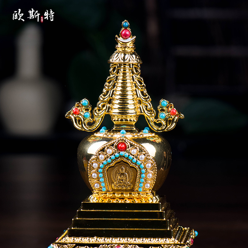 欧斯特 客厅家用佛塔摆件 鎏金镶嵌宝石菩提塔 桌面宝塔装饰品