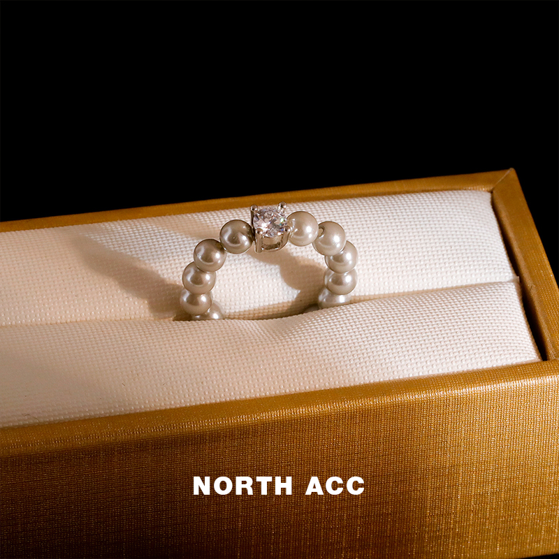 NORTHACC新款简约小众设计麻灰色戒指锆石施家正圆珍珠食指戒女