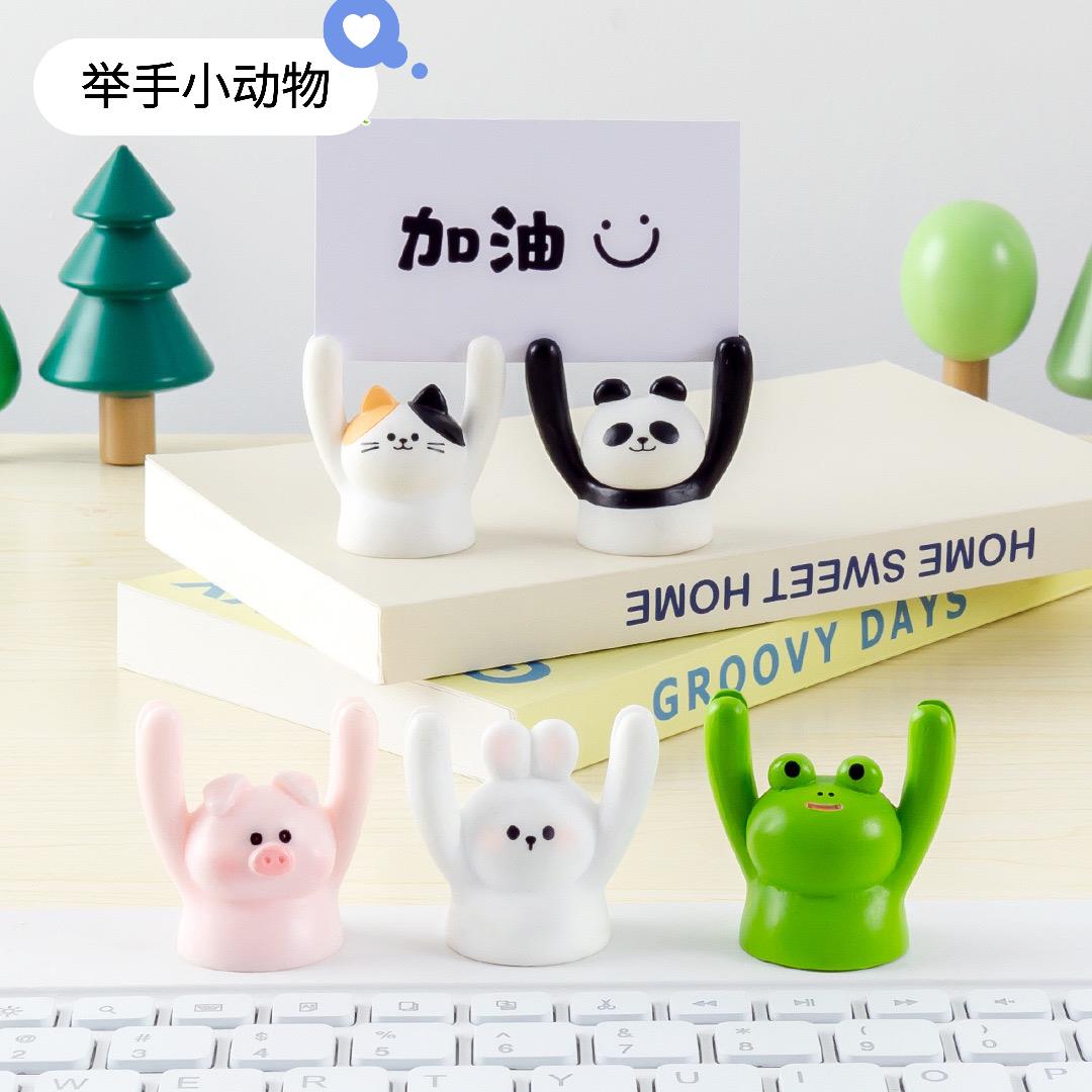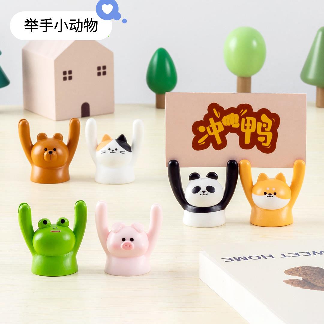 微景观创意举手小动物留言夹 DIY装饰品配件桌面汽车载迷你小摆件