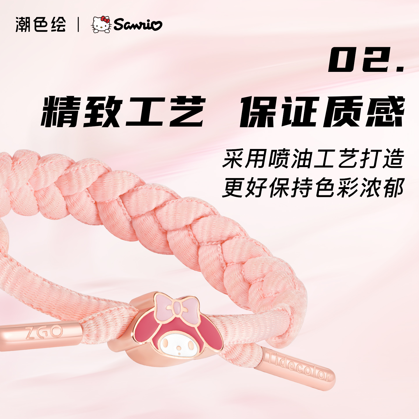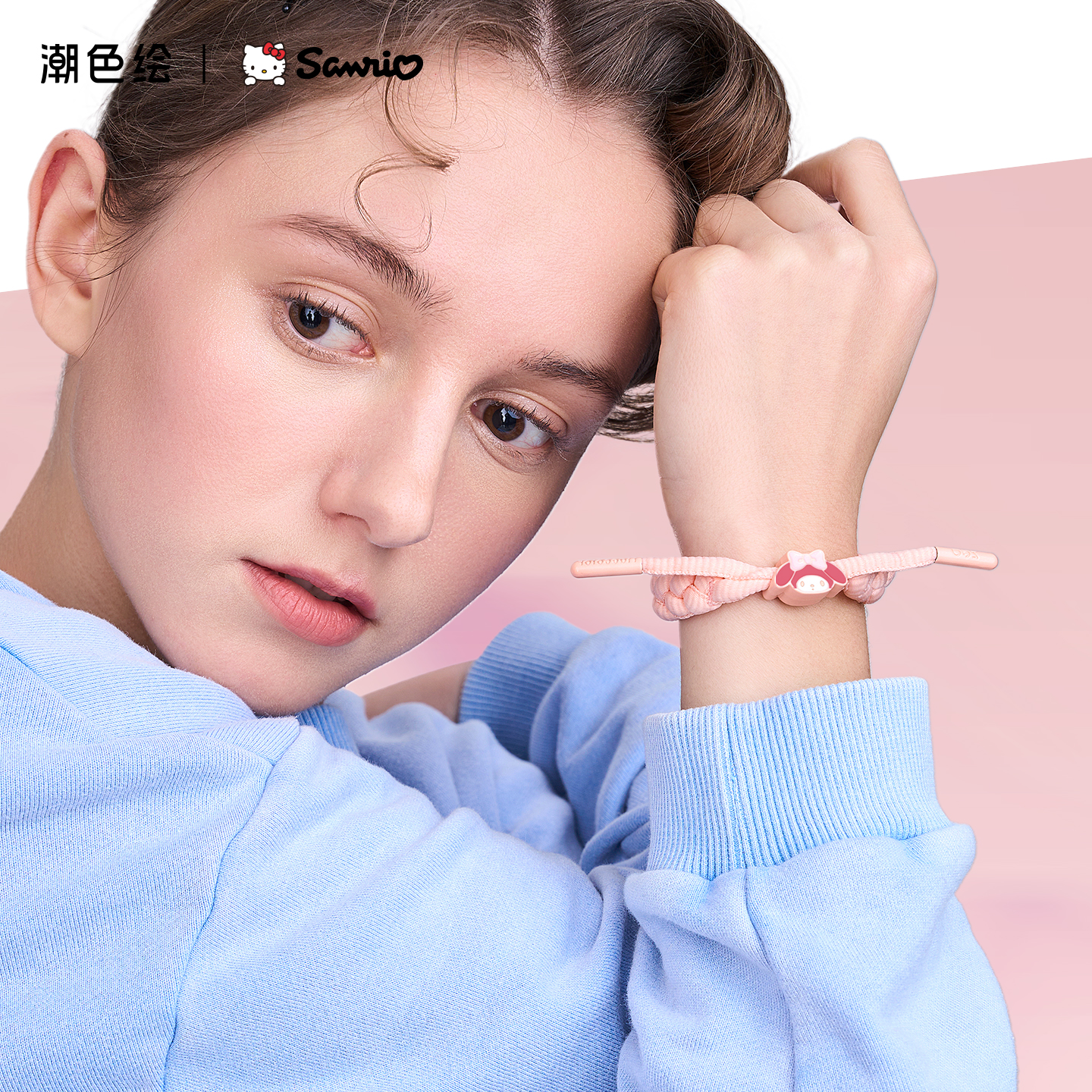 潮色绘x三丽鸥玉桂狗美乐蒂可爱粉色编织手绳手串女闺蜜情侣手链