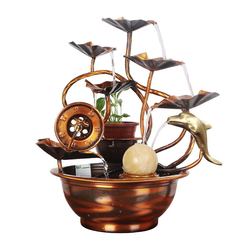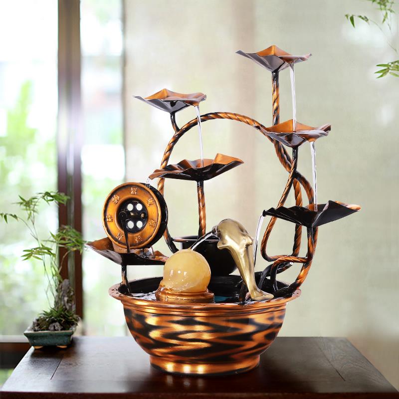 招财纯铜荷叶循环水家居办公室客厅桌面喷泉流水摆件创意乔迁礼品