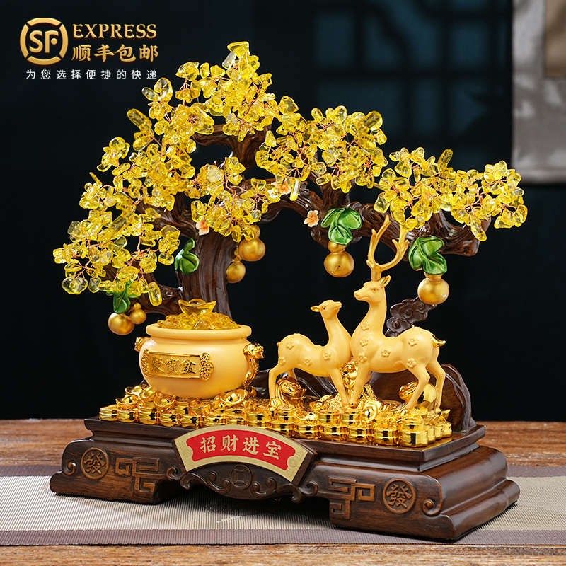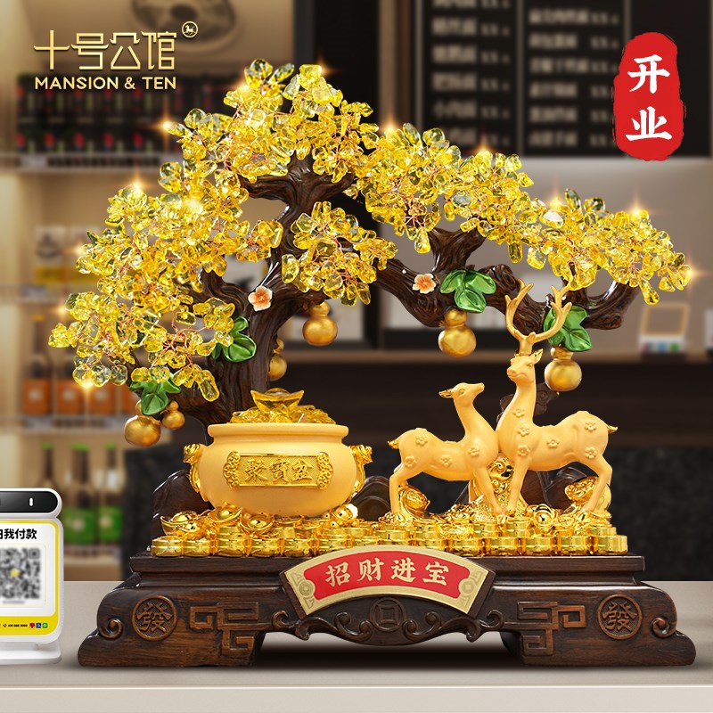 开业收银台聚宝盆树礼物前台鹿乔迁发财摆件新款招财装饰聚财店铺