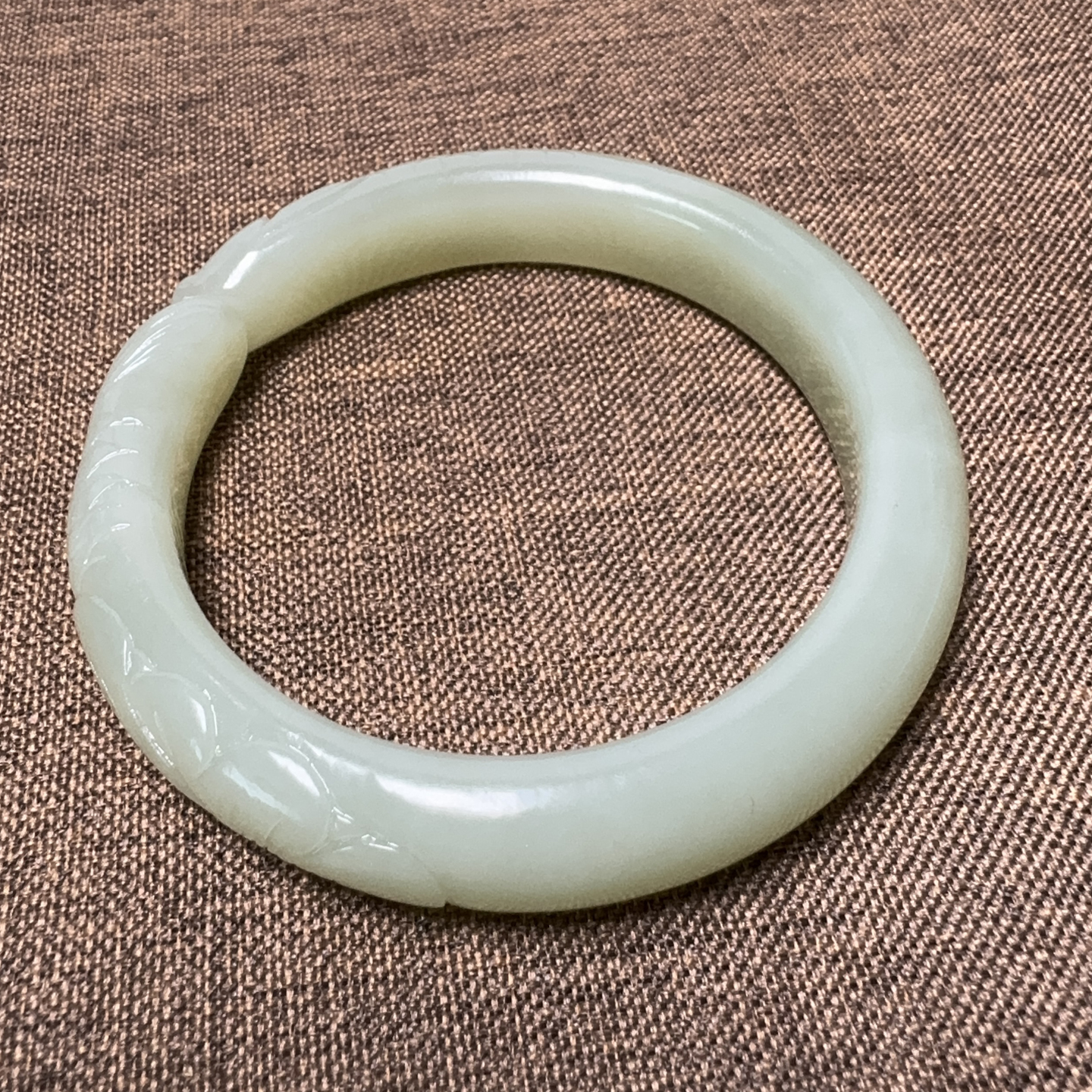 天然和田玉手镯55.5mm新疆且末料蓝调精雕鱼连年有余手镯子Q