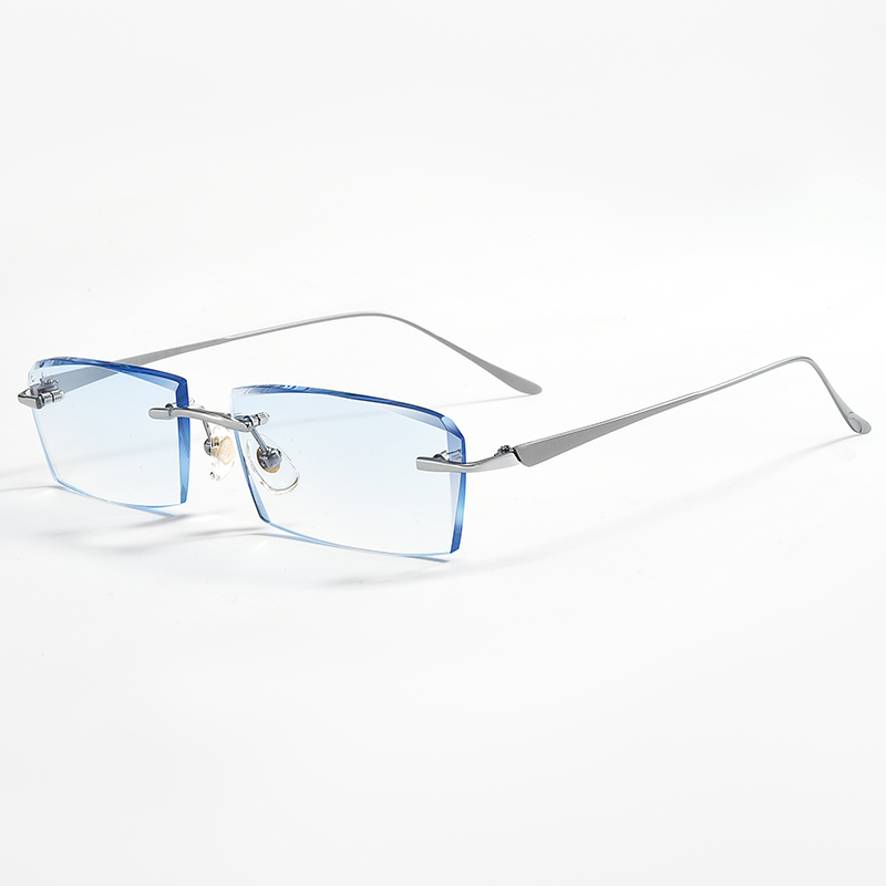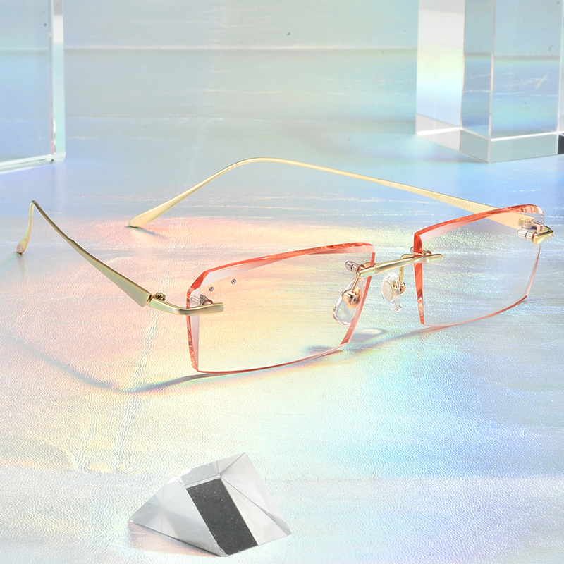 眼镜框男纯钛变色防辐射近视镜配成品无框眼镜架丹阳钻石切边眼睛