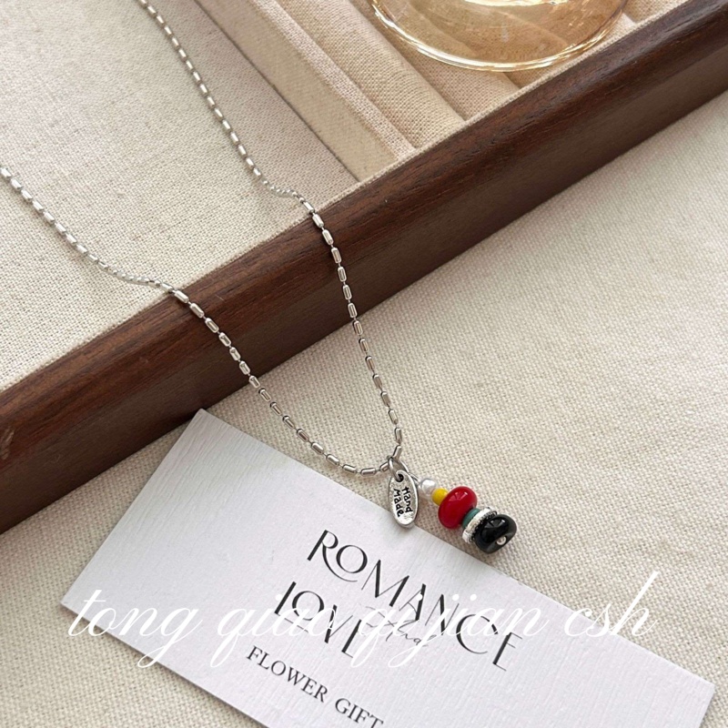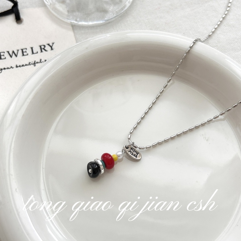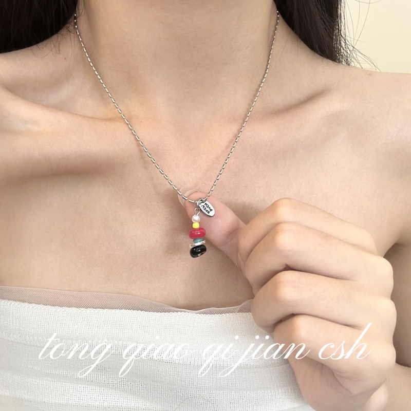 撞色串珠吊坠项链轻奢小众设计感独特锁骨链2025新款日常百搭配饰
