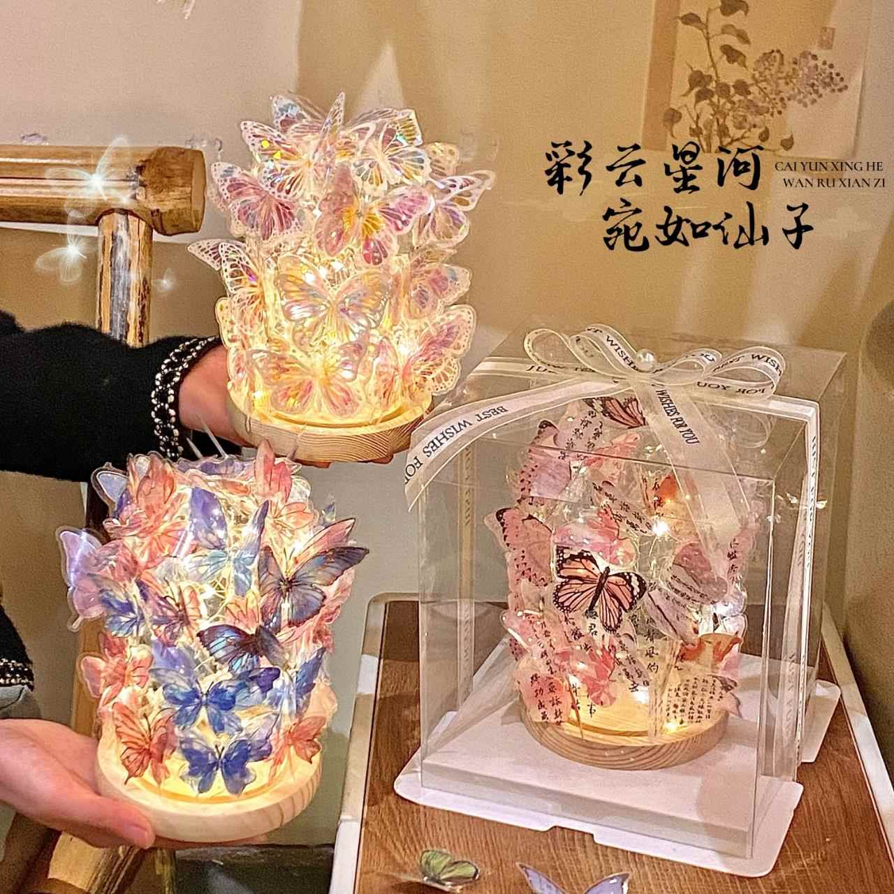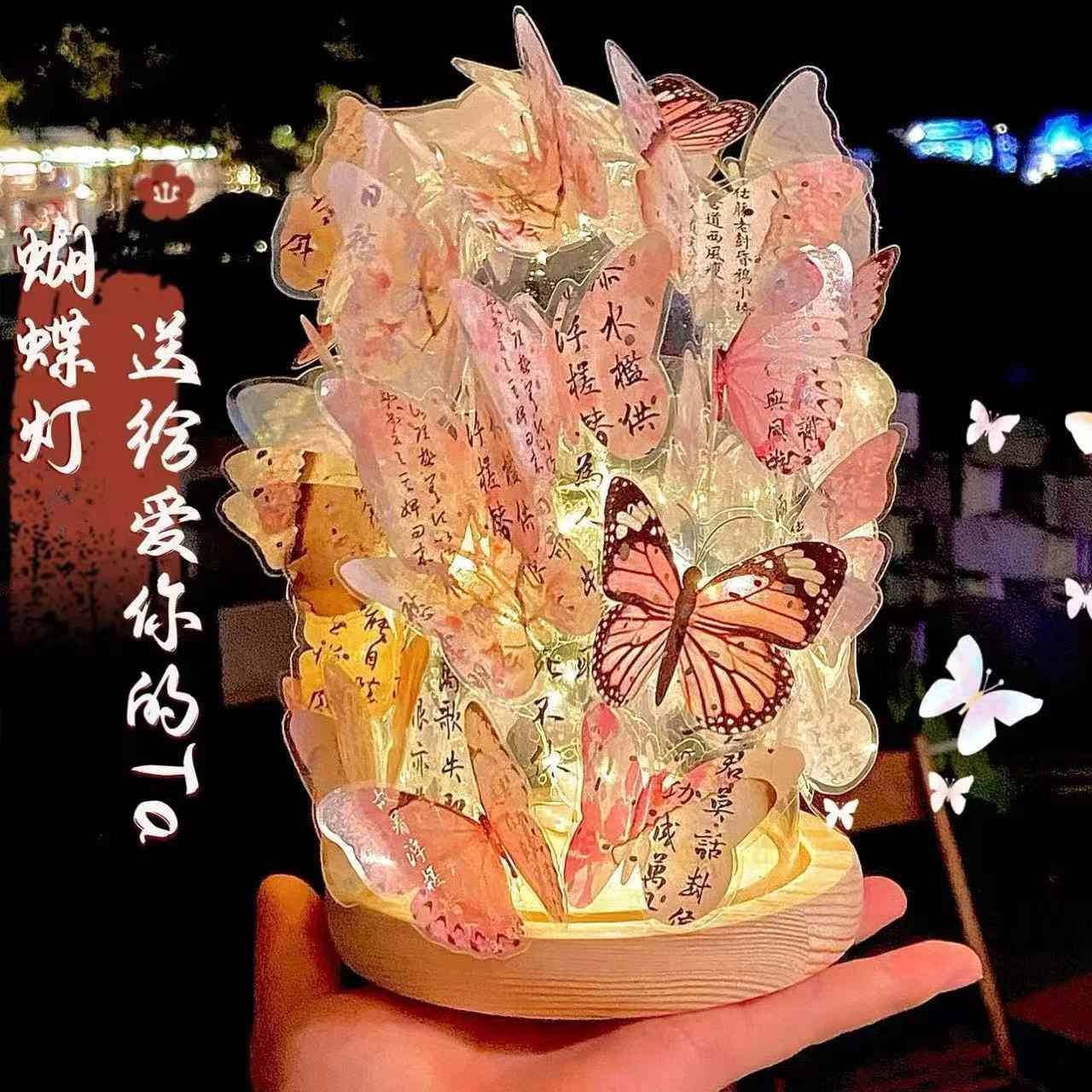 中式彩色多巴胺蝴蝶氛围感发光居家桌面摆件装饰卧室拍照道具浪漫
