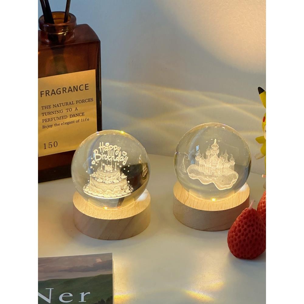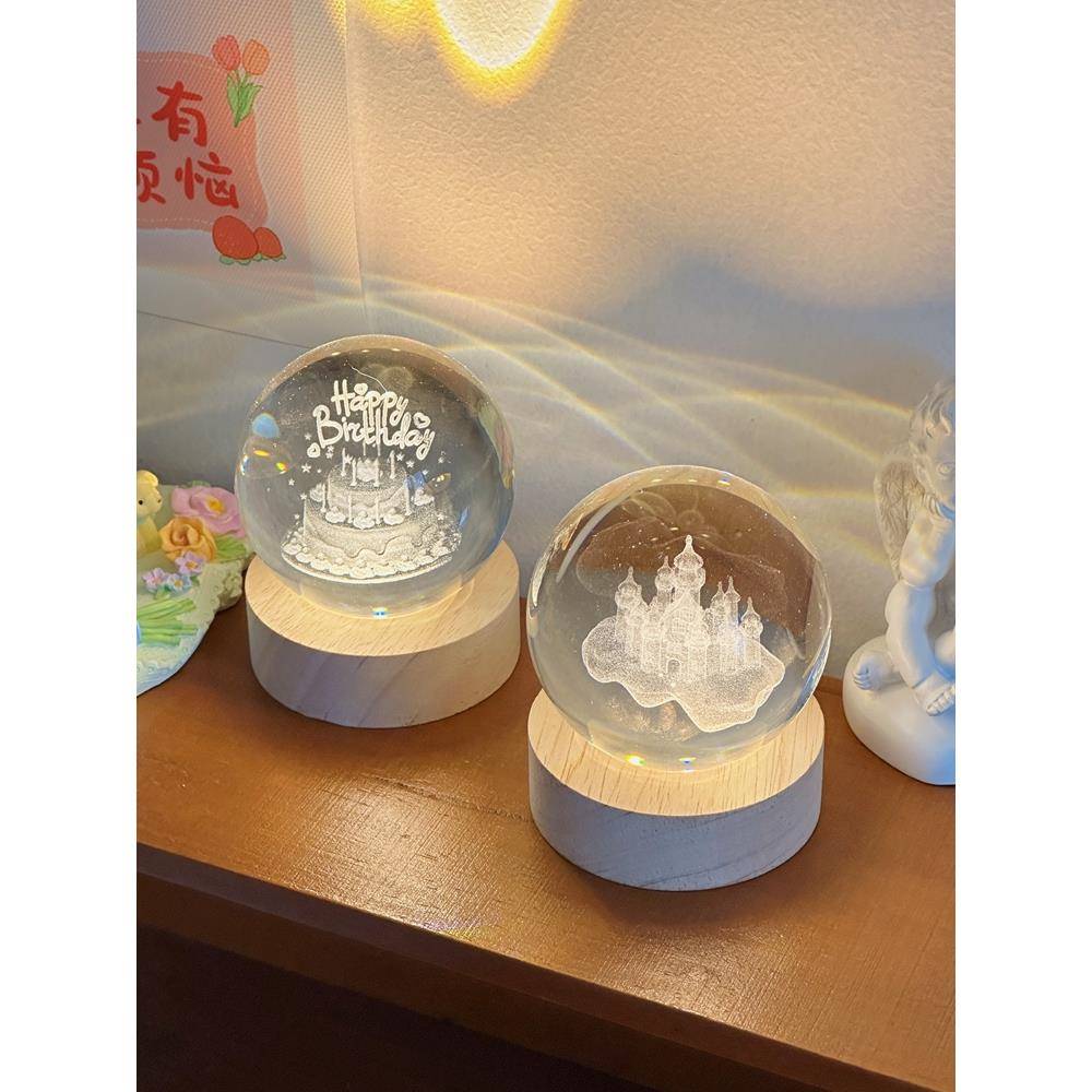 浪漫文艺高级发光水晶球小夜灯房间卧室桌面装饰摆件生日礼物毕业