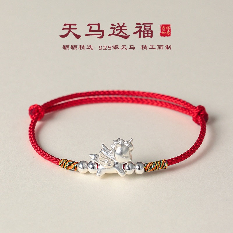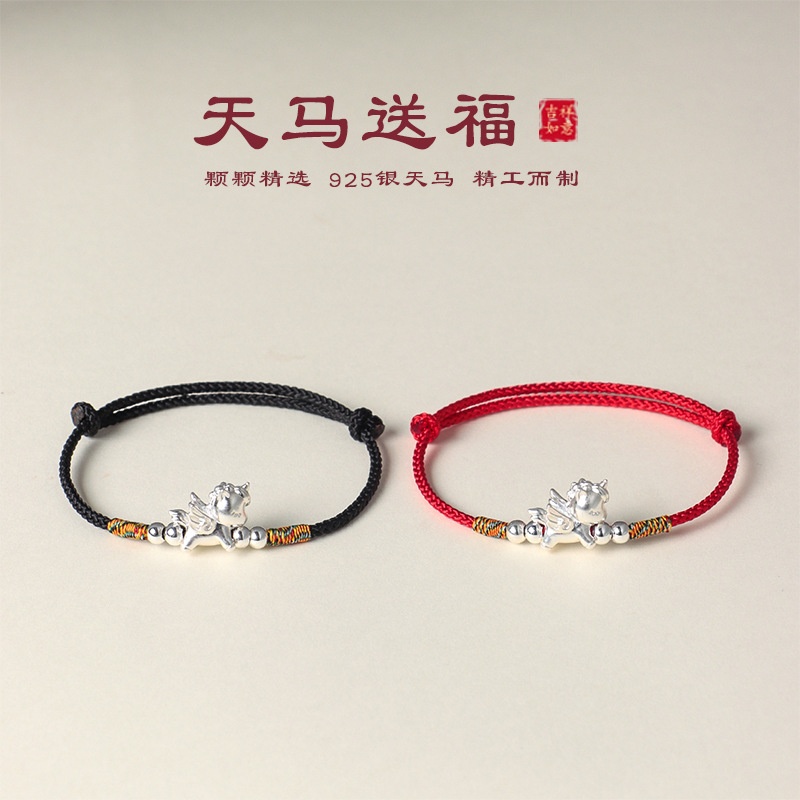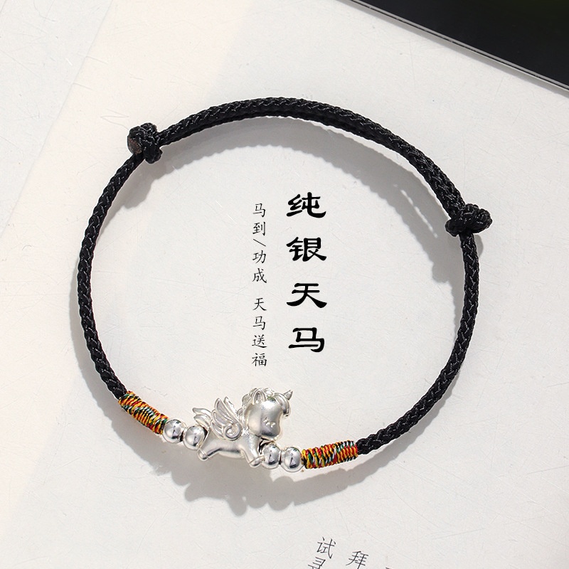 马年手工编织手绳925银天马情侣式编绳简约转运手绳编织绳
