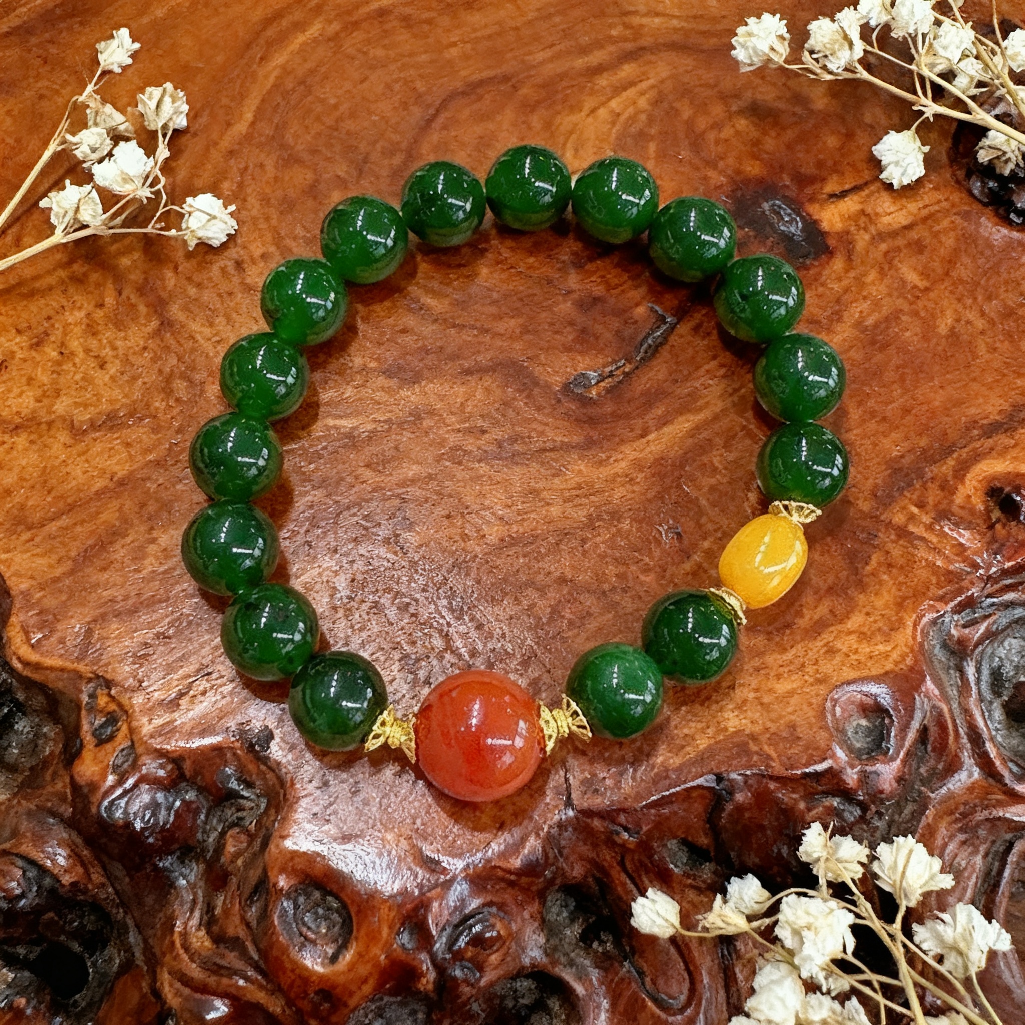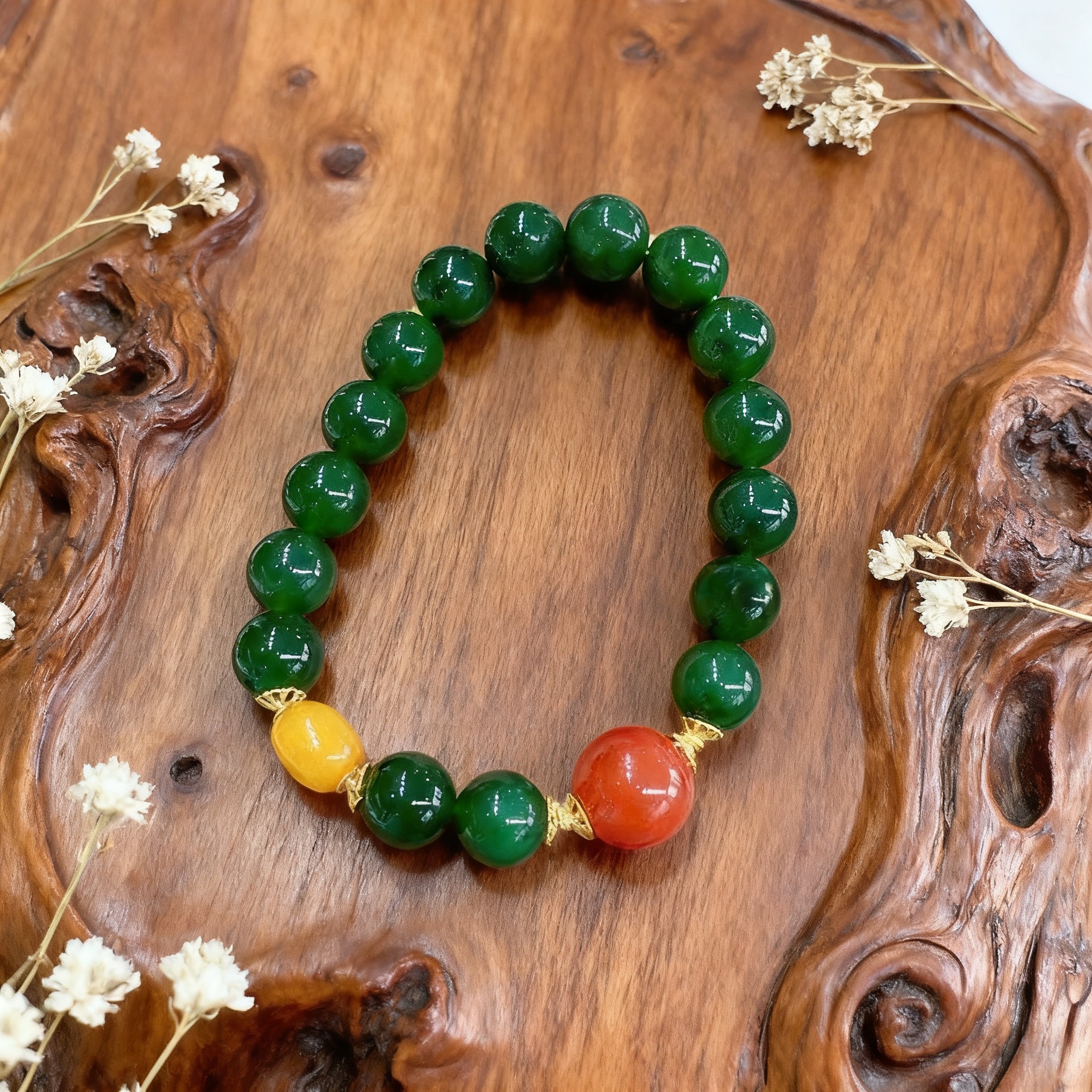 2025年新款和田玉碧玉手串10mm少黑点女款天然碧玉手链鸿运当头款