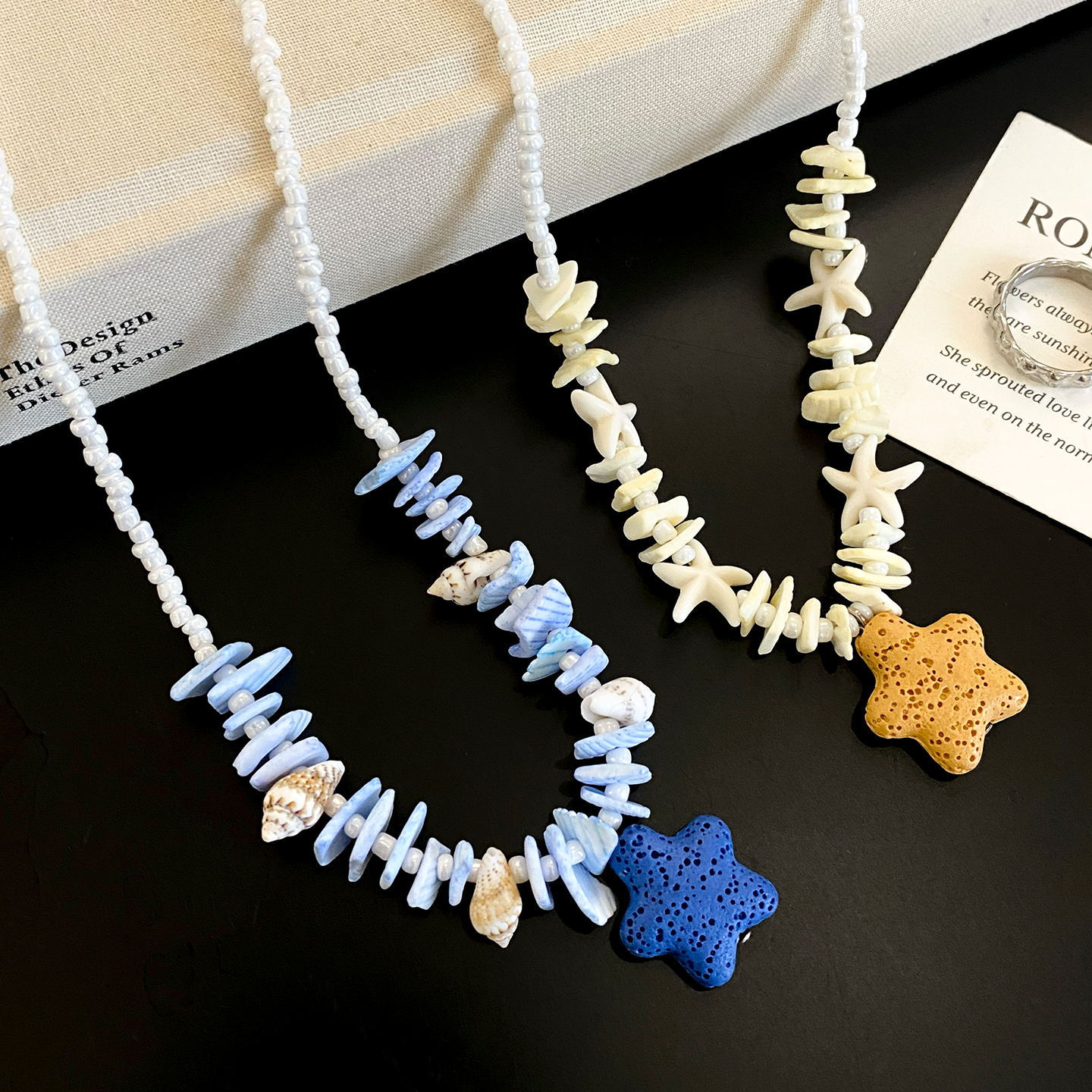 夏日多巴胺贝壳海星串珠项链女小众设计高级感海边度假锁骨链颈链