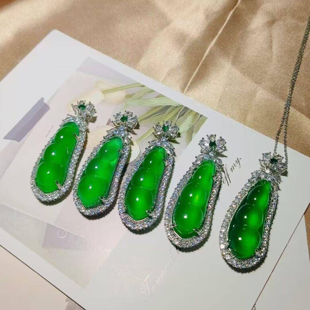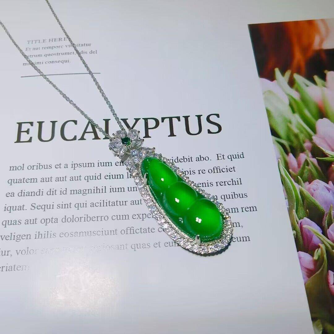 本命年银镶嵌翡翠绿玉髓福豆吊坠绿玛瑙女款玉石豆子项链挂件饰品