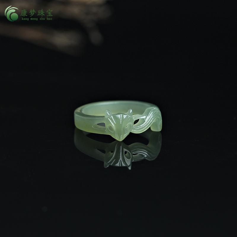 天然和田玉狐狸吊坠青白玉魅狐挂件玉石指环男女情侣玉石饰品礼物