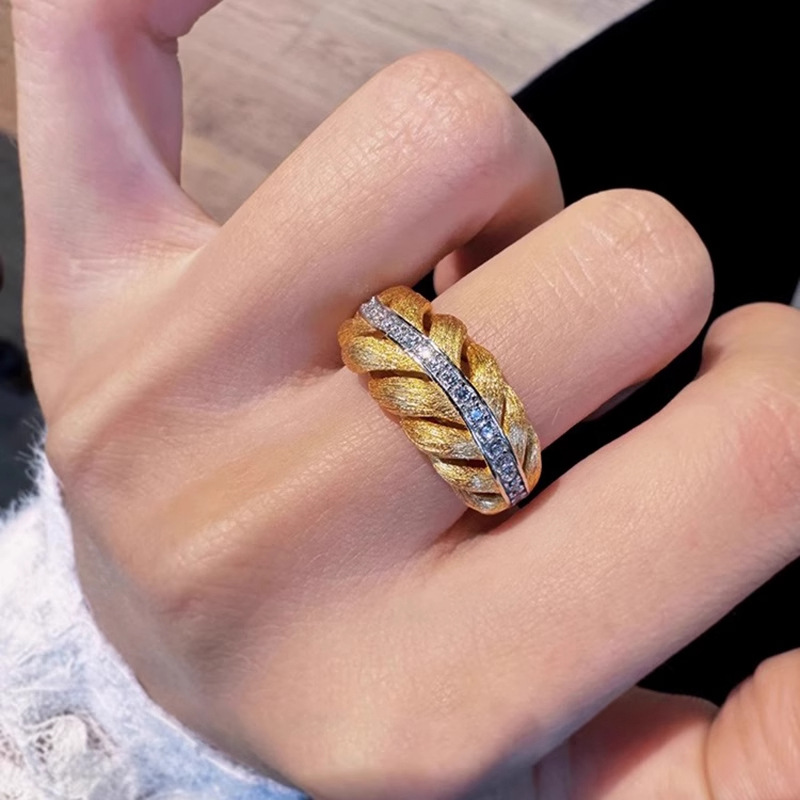 新品中古排钻羽毛戒指小众轻奢高级感手工拉丝麦穗指环
