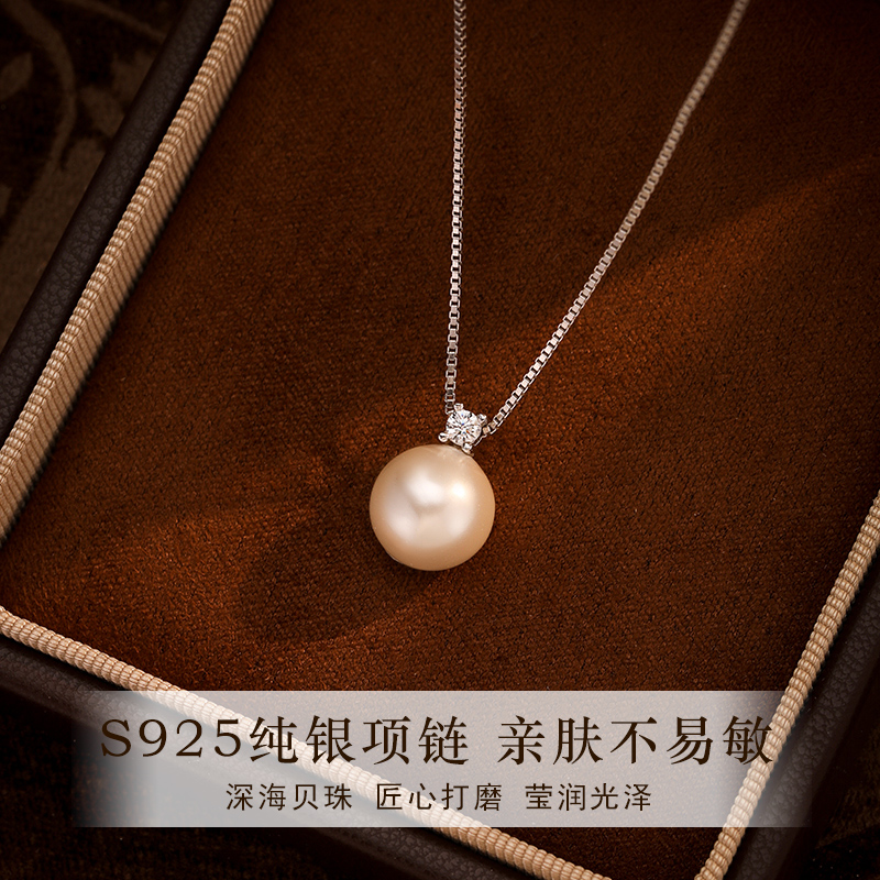 深海母贝珍珠单颗吊坠纯银项链女2025新款轻奢高级感戴妃款锁骨链