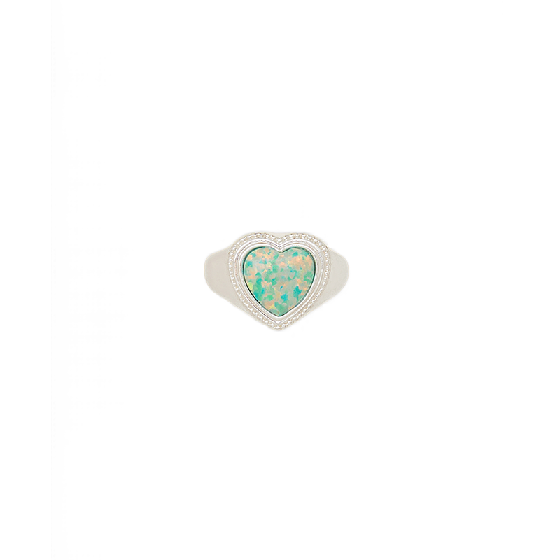 OUPS 欧泊之恋戒指蓝爱心开口指环复古小众设计高级感饰品